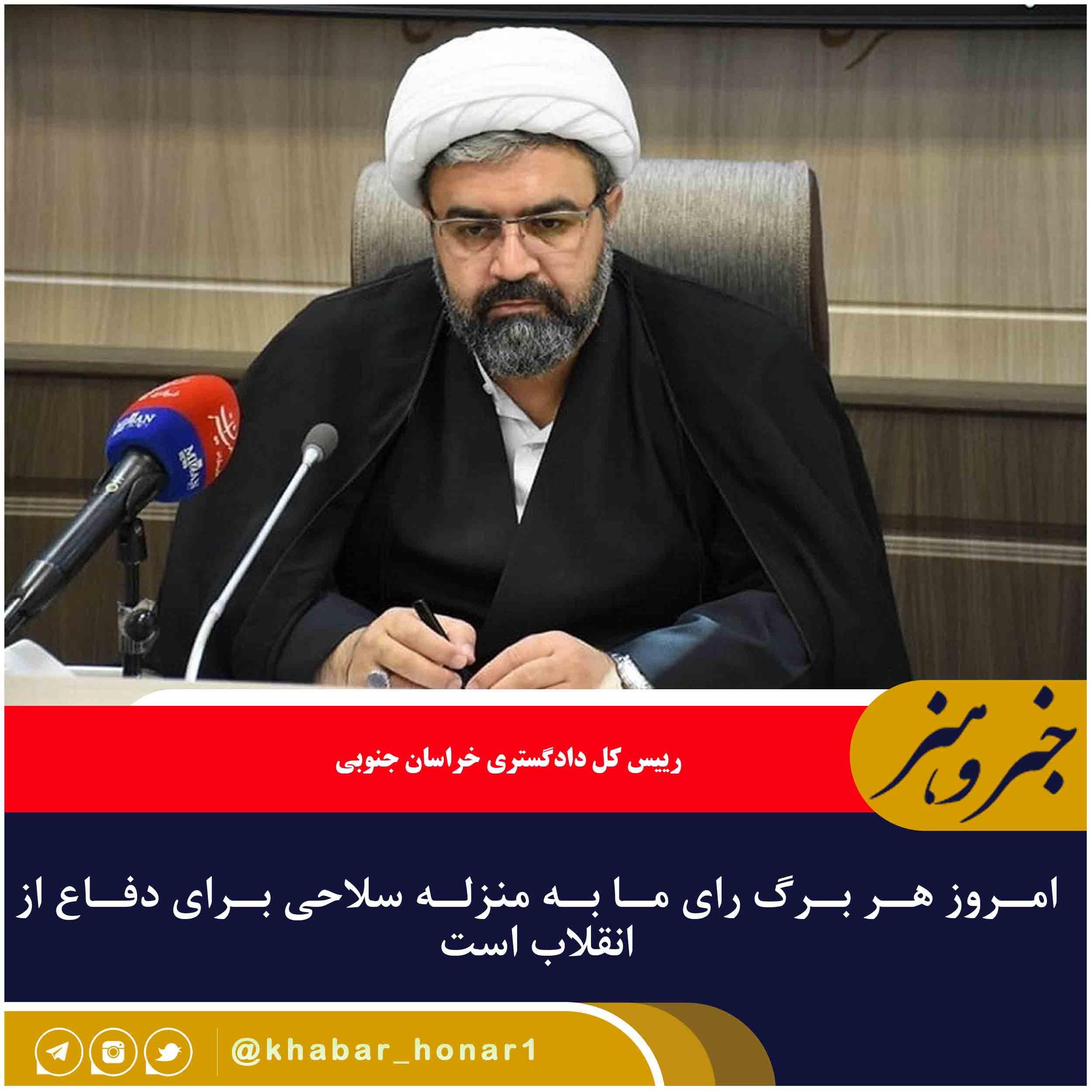 – رییس کل دادگستری خراسان جنوبی گفت: امروز هر برگ رای ما به منزله سلاحی برای دفاع از انقلاب است.