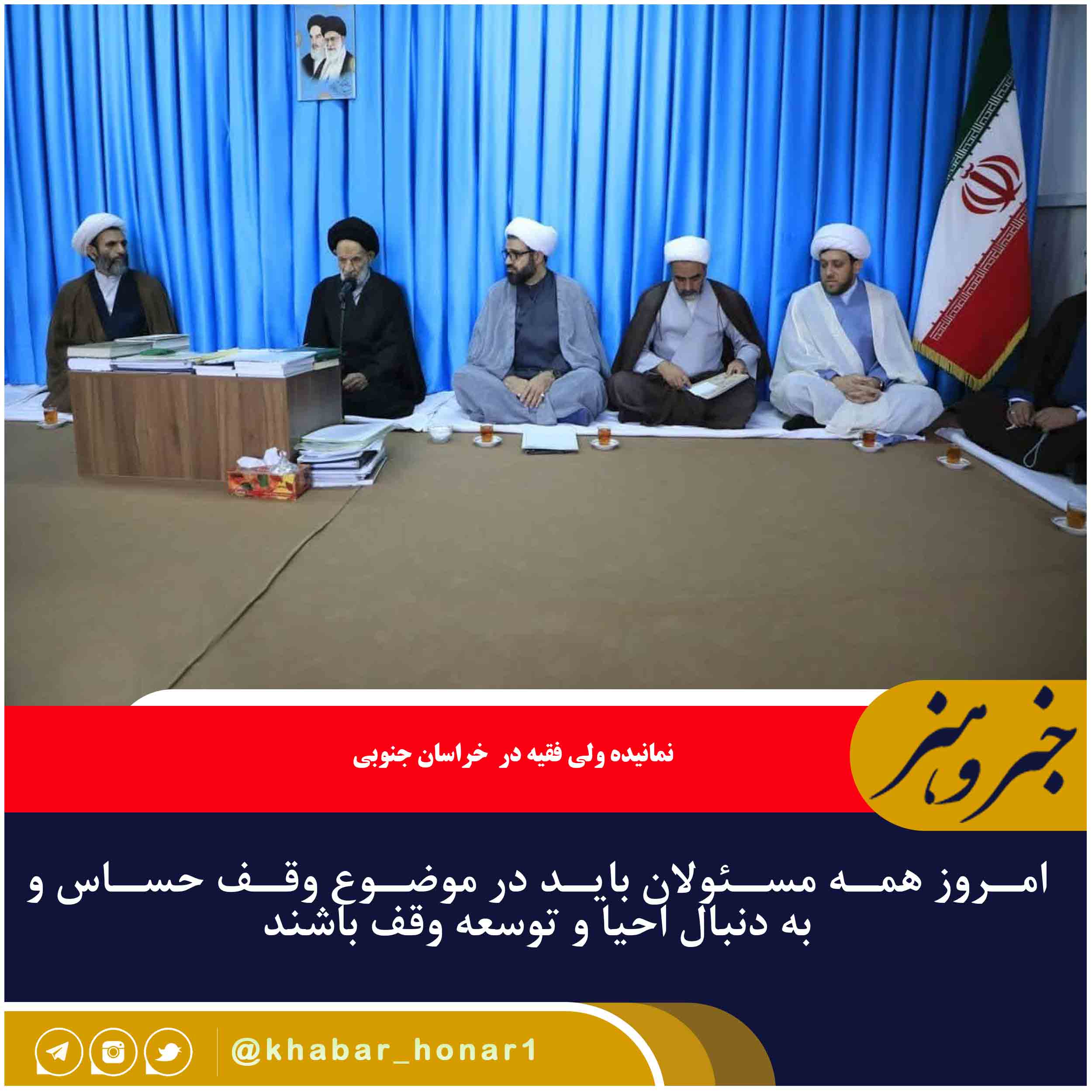 نمانیده ولی فقیه در استان گفت : امروز همه مسئولان باید در موضوع وقف حساس و به دنبال احیا و توسعه وقف باشند.