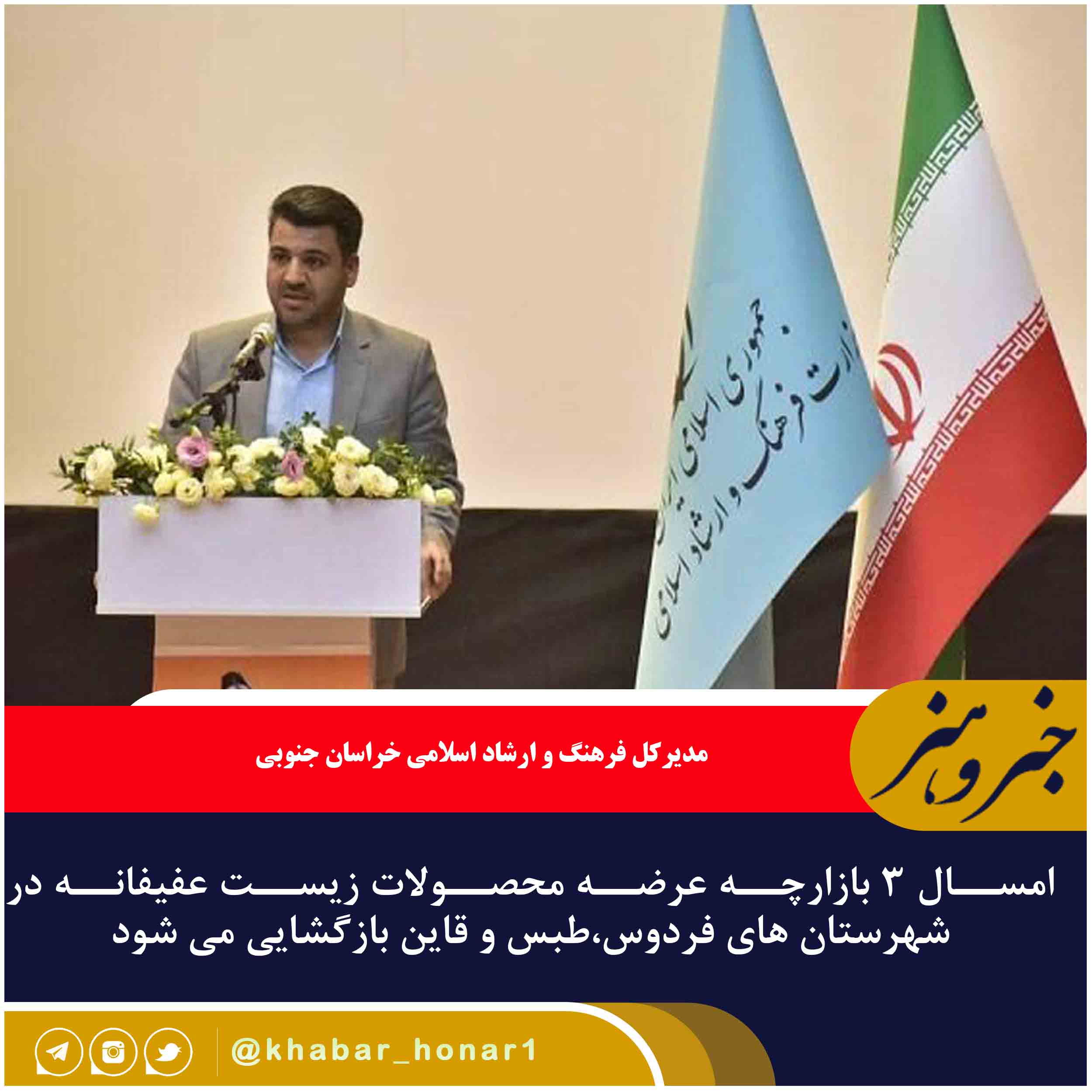 مدیرکل فرهنگ و ارشاد اسلامی خراسان جنوبی گفت: امسال شاهد بازگشایی ۳ بازارچه عرضه محصولات زیست عفیفانه در شهرستان های فردوس،طبس و قاین هستیم.