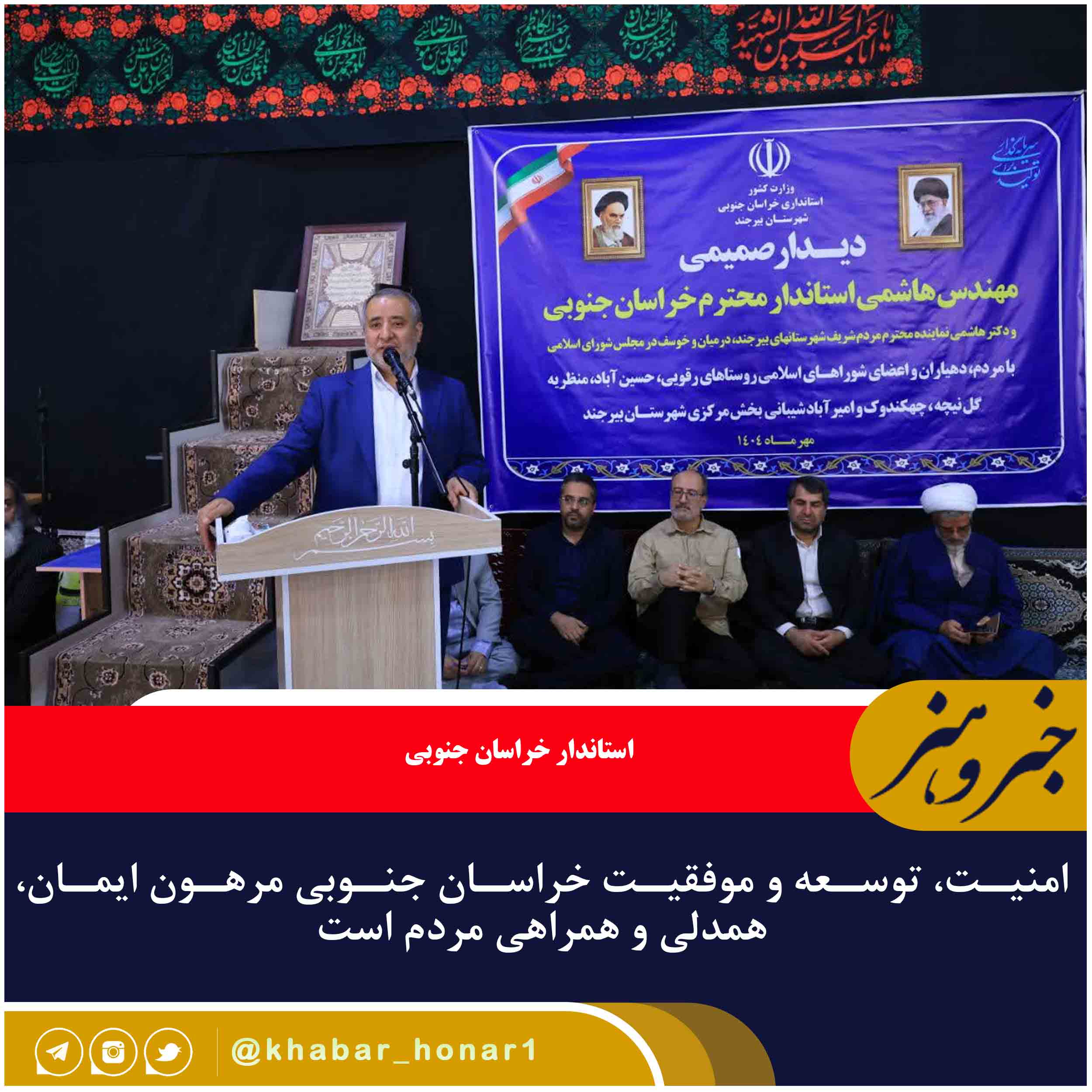 🔹استاندار خراسان جنوبی با تأکید بر نقش محوری مردم در پیشرفت استان گفت: امنیت، توسعه و موفقیت خراسان جنوبی مرهون ایمان، همدلی و همراهی مردم است.