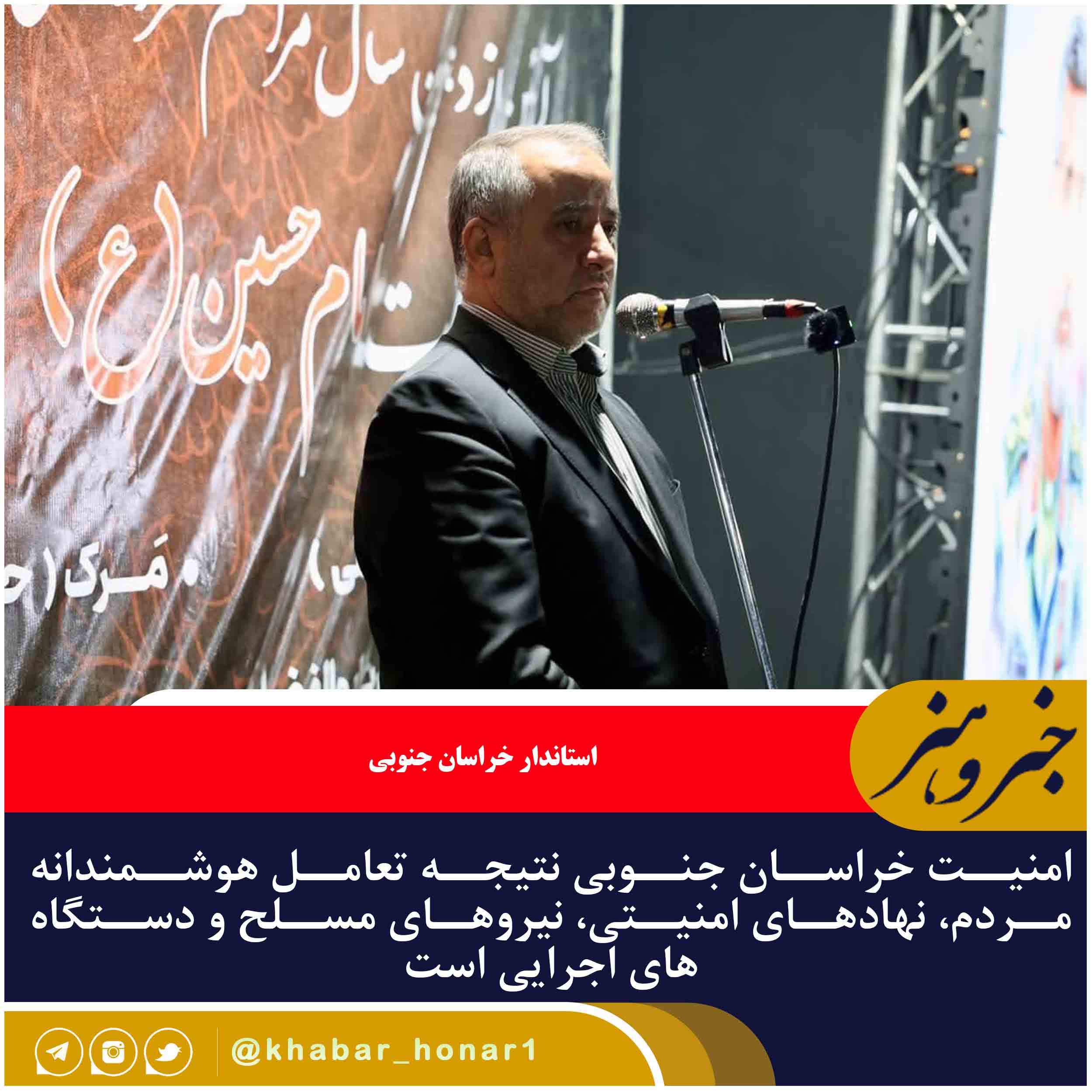 🔹استاندار خراسان جنوبی گفت : امنیت پایدار خراسان جنوبی نتیجه تعامل هوشمندانه مردم، نهادهای امنیتی، نیروهای مسلح و دستگاه‌های اجرایی است.