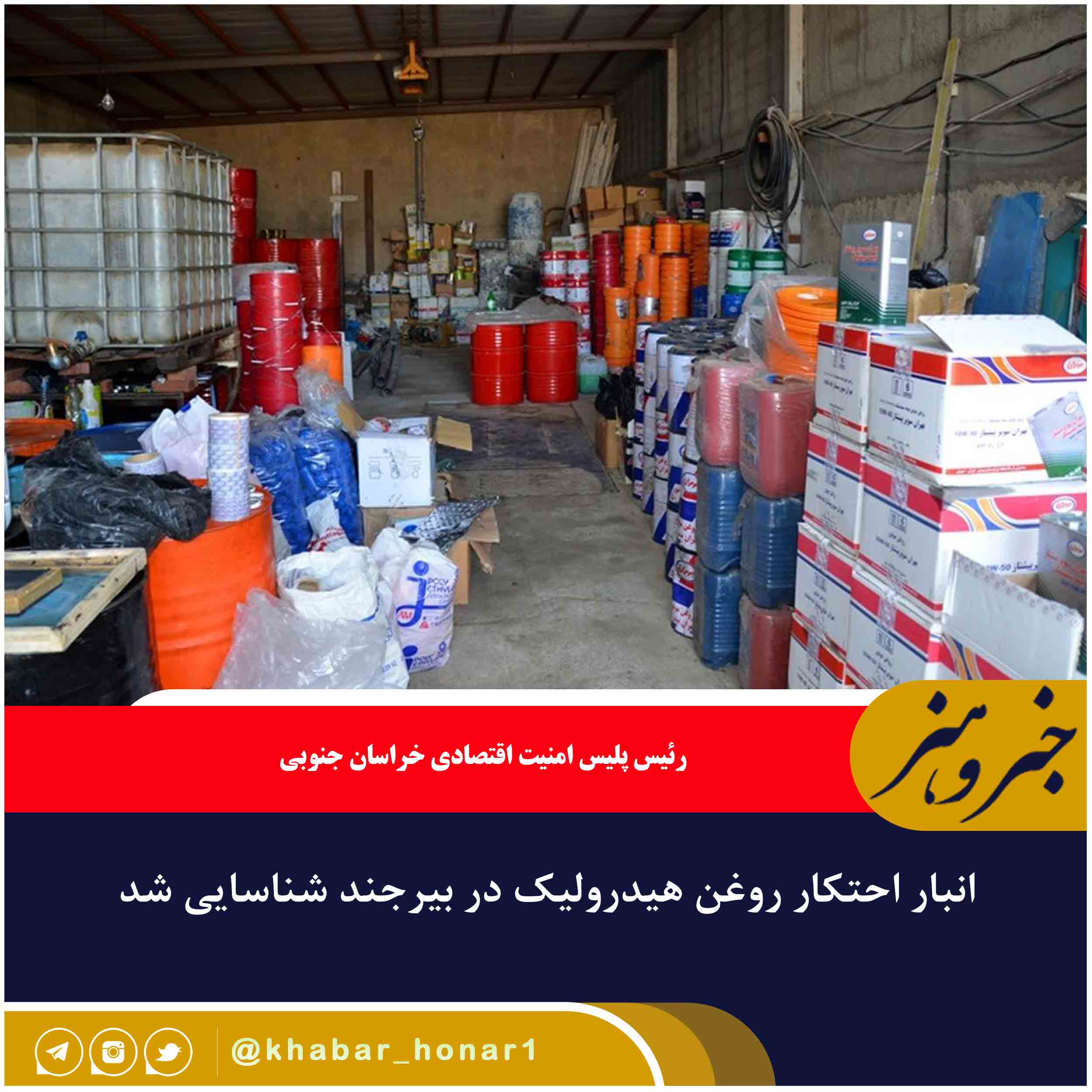 رئیس پلیس امنیت اقتصادی خراسان جنوبی از شناسایی انبار احتکار روغن هیدرولیک در شهر بیرجند و کشف ۲ هزار و ۴۰۰ لیتر روغن خبر داد.