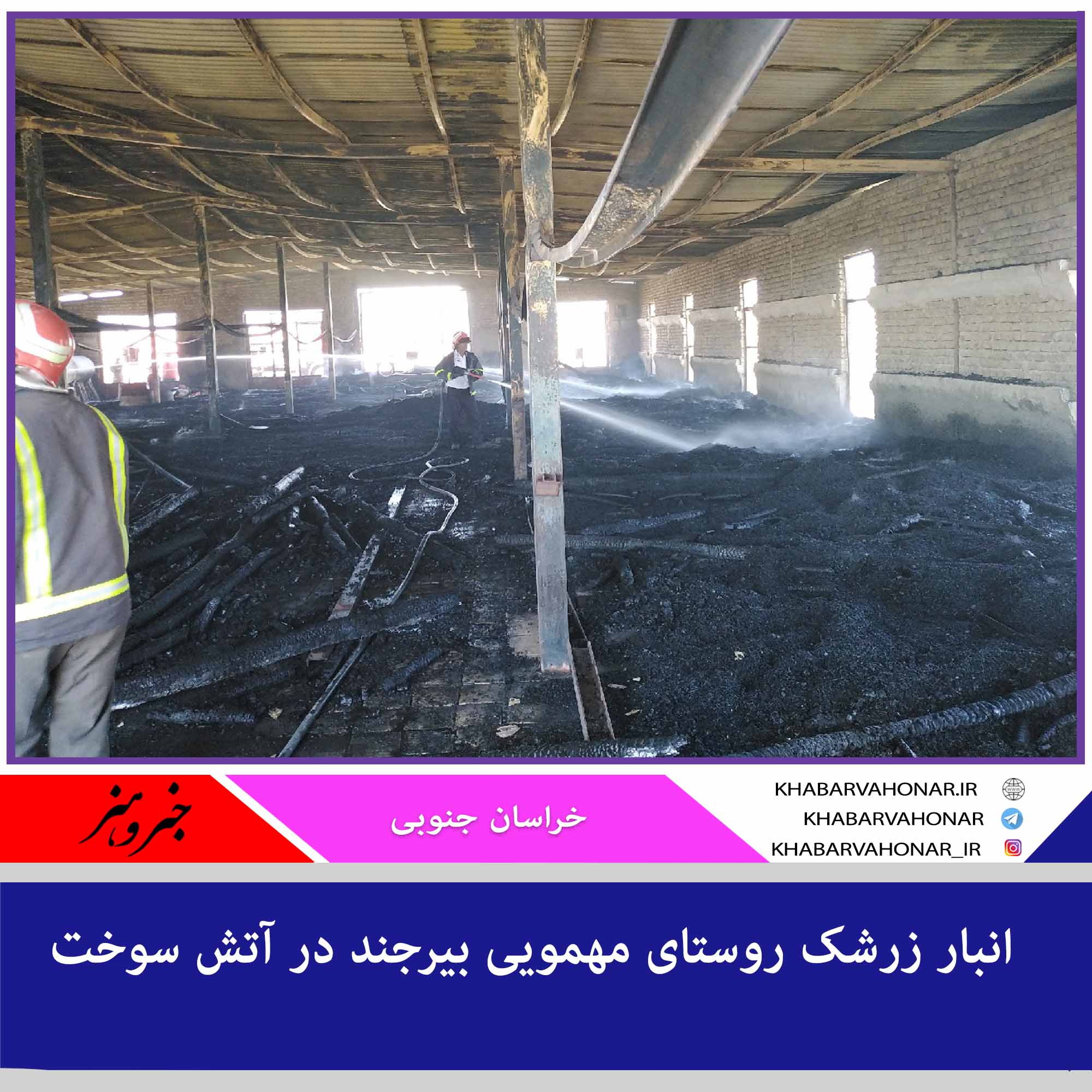 مدیرعامل سازمان آتش نشانی و خدمات ایمنی شهرداری بیرجند گفت: یک انبار زرشک به مساحت ۵۰۰ مترمربع در ۲ طبقه در روستای مهمویی بیرجند طعمه حریق شد.