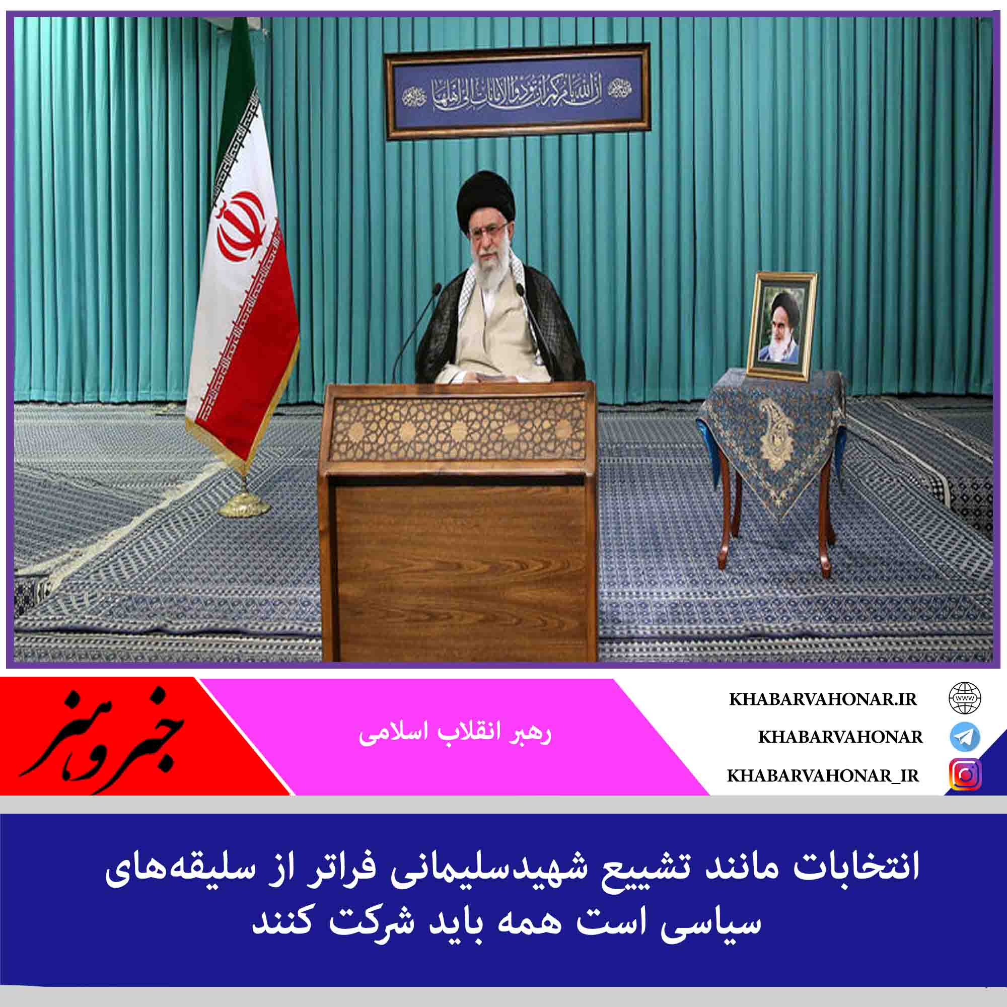 رهبر معظم انقلاب اسلامی عصر امروز (چهارشنبه) در سخنرانی تلویزیونی برای ملت ایران، انتخابات روز جمعه را رویدادی سرنوشتساز و تأثیرگذار در همه مسائل عمده اقتصادی و غیر اقتصادی خواندند و با اشاره به تلاش بیوقفه دشمنان برای کاهش مشارکت مردم، تضعیف ایران و سپس افزایش فشارها و دخالتهای سیاسی و اقتصادی و تروریستی در ایران گفتند: گلههای مردم بویژه قشرهای محروم درباره رسیدگی نکردن به مشکلات معیشتی آنها بجاست اما این مشکلات را باید با انتخاب فردی قوی، پرکار، قدرتمند و خستگیناپذیر حل کرد و به فضل الهی روز جمعه مردم برخلاف خواست دشمنان، دوباره به ایران و جمهوری اسلامی آبرو میدهند و همه قشرها با سلیقههای متفاوت سیاسی به میدان میآیند و همچون تشییع حاج قاسم سلیمانی به انتخابات نگاهی فراتر از سلیقه های سیاسی خواهند داشت.