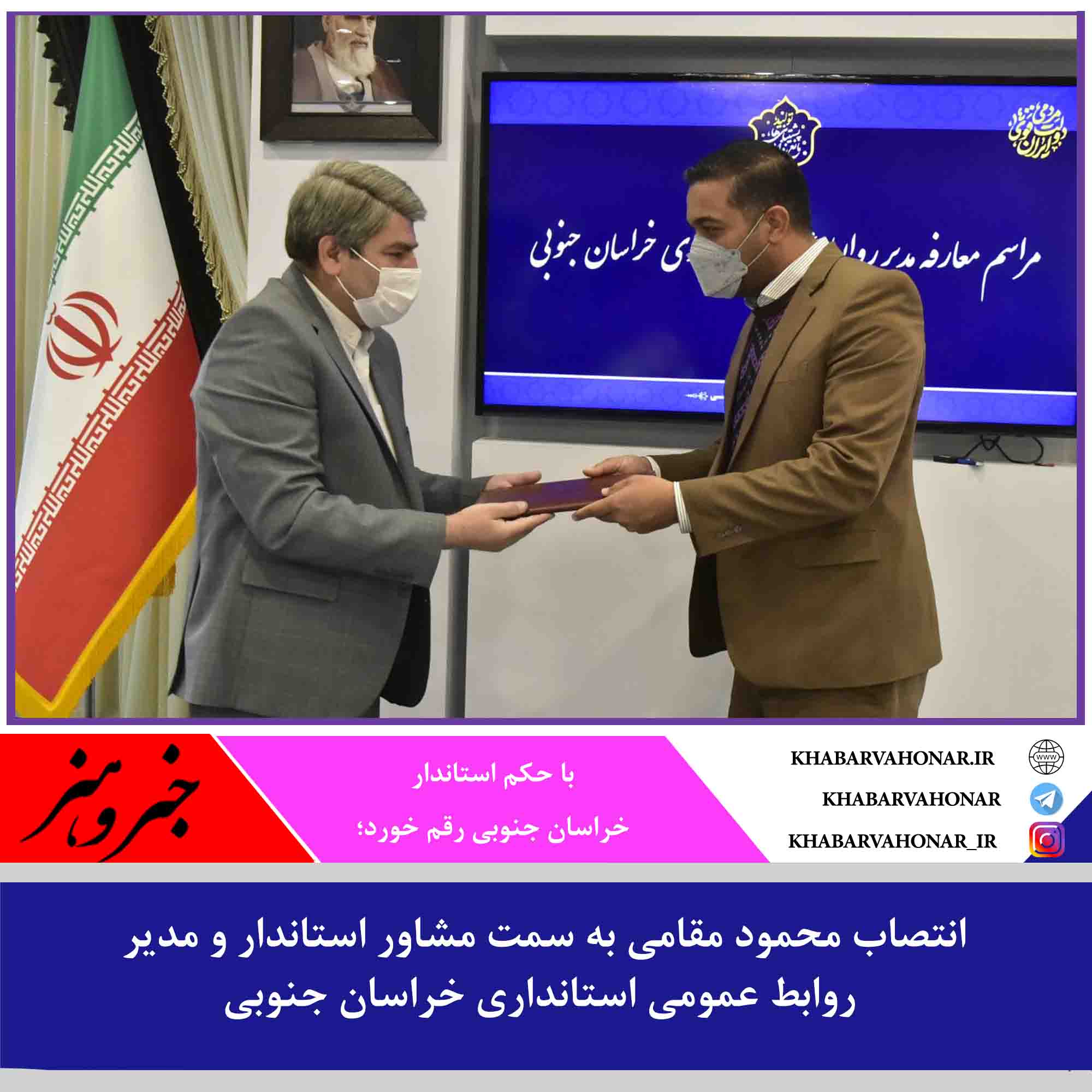 ا حکمی به امضای قناعت استاندار خراسان جنوبی، محمود مقامی به عنوان مشاور استاندار و مدیر روابط عمومی استانداری تعیین شد.