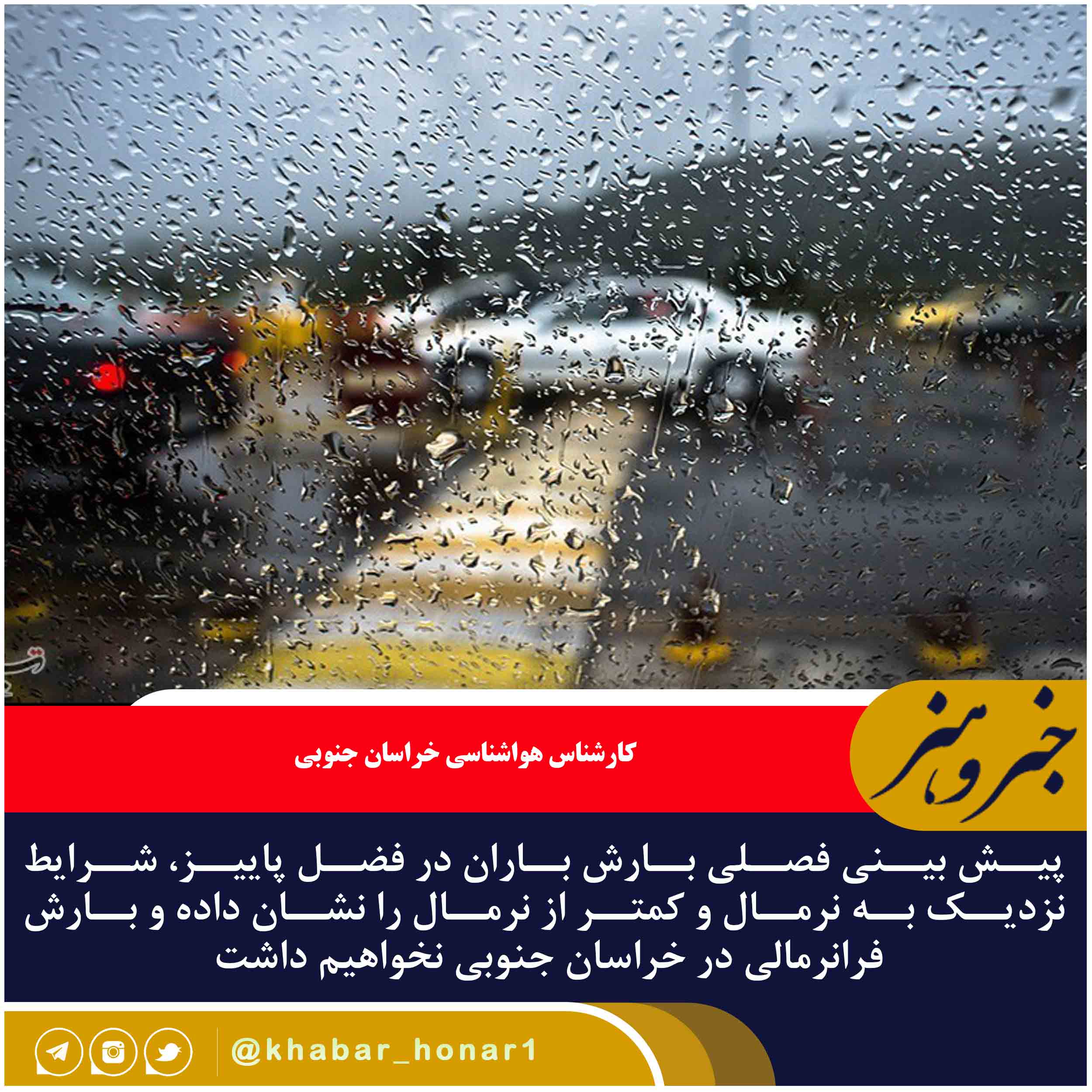 کارشناس هواشناسی خراسان جنوبی اظهار کرد: پیش بینی فصلی بارش باران در فضل پاییز، شرایط نزدیک به نرمال و کمتر از نرمال را نشان داده و بارش فرانرمالی در خراسان جنوبی نخواهیم داشت.