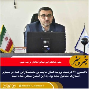 معاون هماهنگی امور عمرانی استاندار خراسان جنوبی اعلام کرد: تاکنون ۷۰ درصد پروندههای مالیاتی معدنکارانی که در سایر استانها تشکیل شده بود، به این استان منتقل شده است.