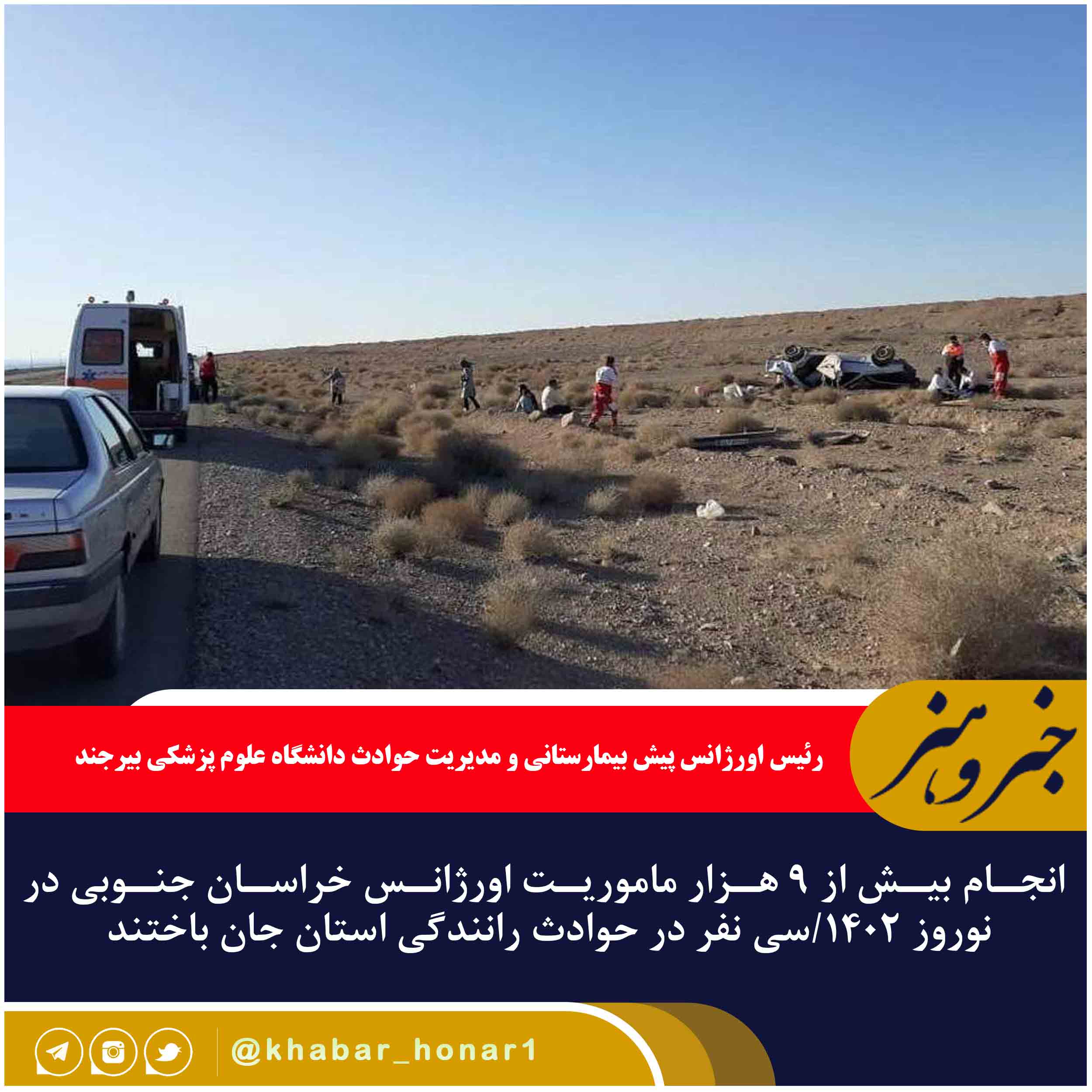 رئیس اورژانس پیش بیمارستانی و مدیریت حوادث دانشگاه علوم پزشکی بیرجند گفت: از ابتدای طرح سلامت نوروزی در ۲۴ اسفند پارسال تاکنون ۳۰ نفر در استان خراسان جنوبی بر اثر حوادث رانندگی جان خود را از دست دادهاند که از این تعداد ۲۵ نفر در صحنه و پنج نفر در بیمارستان فوت کردند.