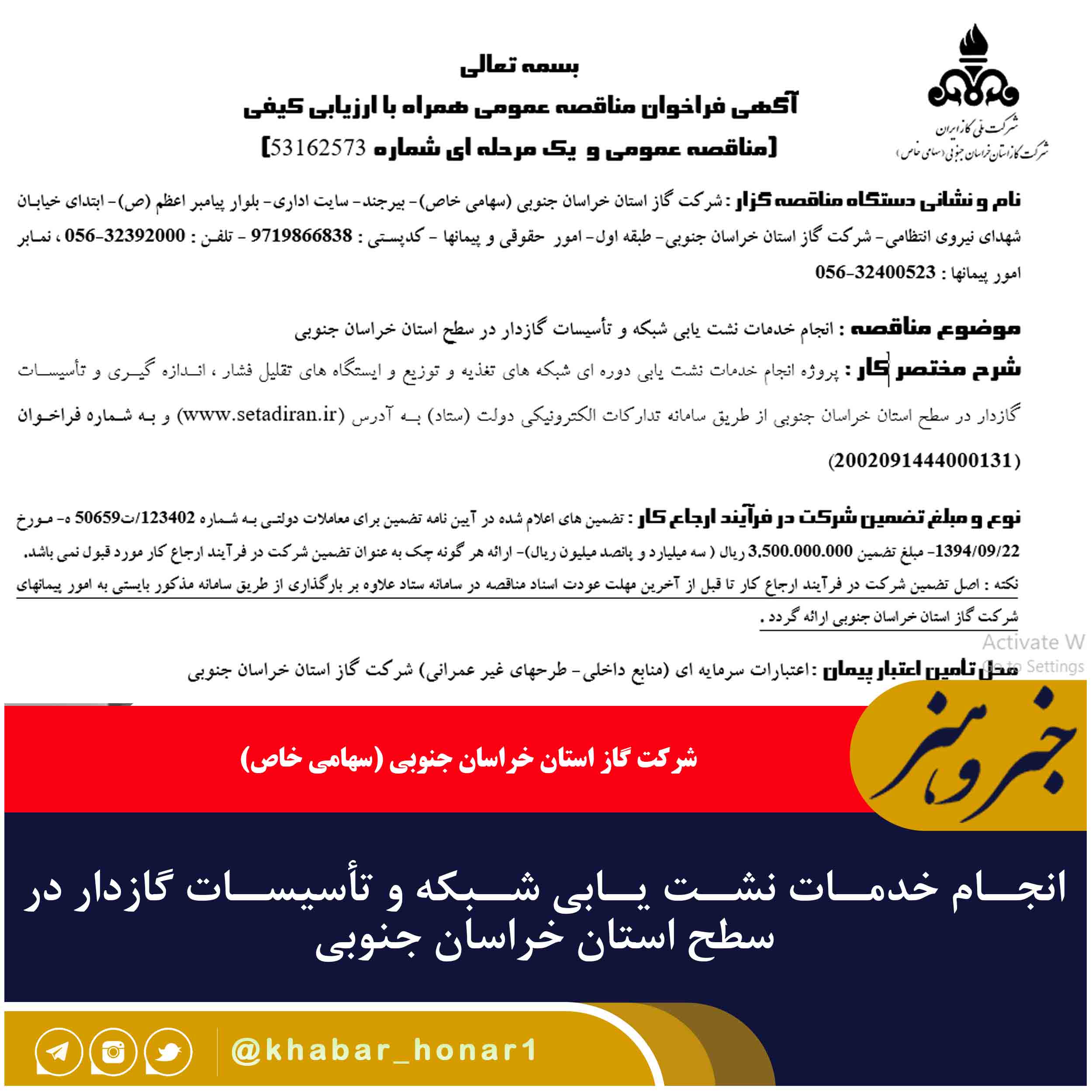 (مناقصه عمومی و یک مرحله ای شماره ۵۳۱۶۲۵۷۳)