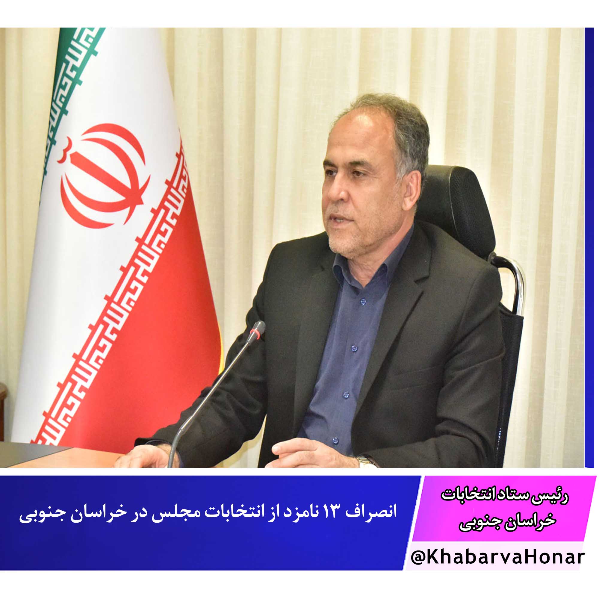 رئیس ستاد انتخابات خراسان جنوبی گفت: تاکنون ۱۳ نفر از نامزدهای انتخاباتی انصراف خود را از ادامه رقابت در انتخابات اعلام کردهاند.