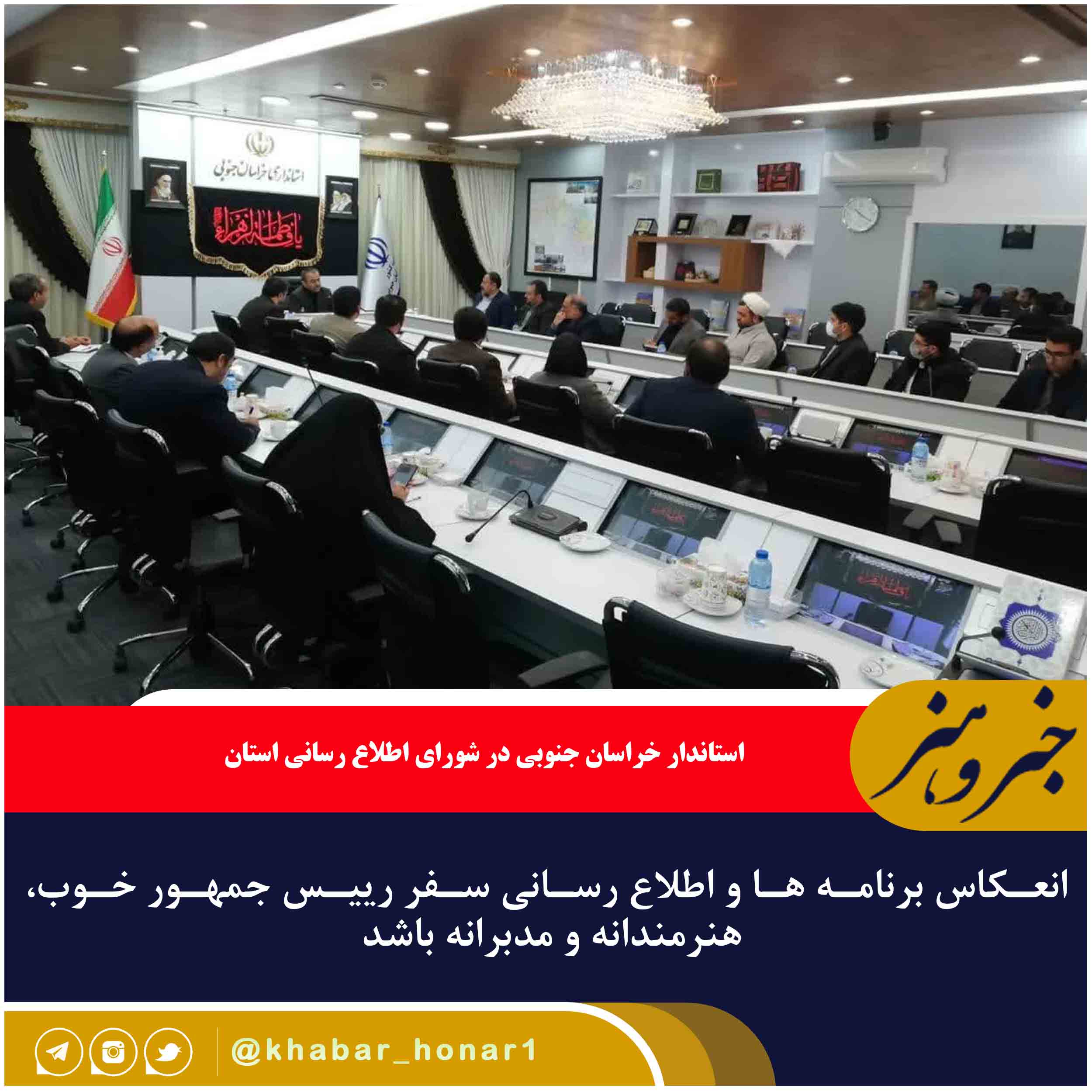 در آستانه دومین سفر رئیس جمهور اسلامی ایران به خراسان جنوبی، شورای اطلاع رسانی استان با هدف کیفی سازی پوشش خبری این سفر و با حضور مدیرکل فرهنگ و ارشاد اسلامی استان برگزار شد.