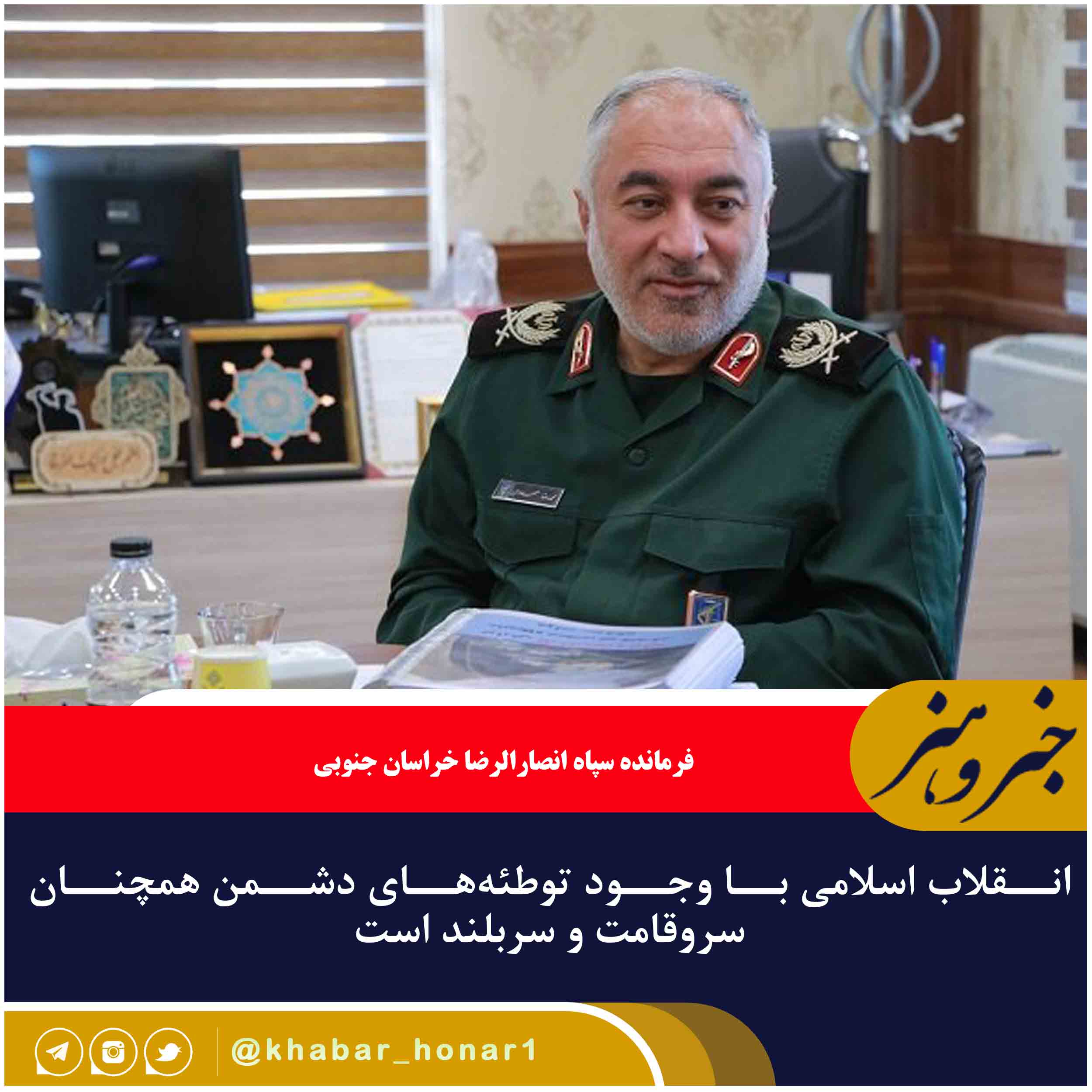فرمانده سپاه انصارالرضا خراسان جنوبی گفت: علی رغم تلاش دشمن اما همچنان انقلاب اسلامی سرافراز، سربلند و سرو قامت در برابر استکبار جهانی ایستاده است.