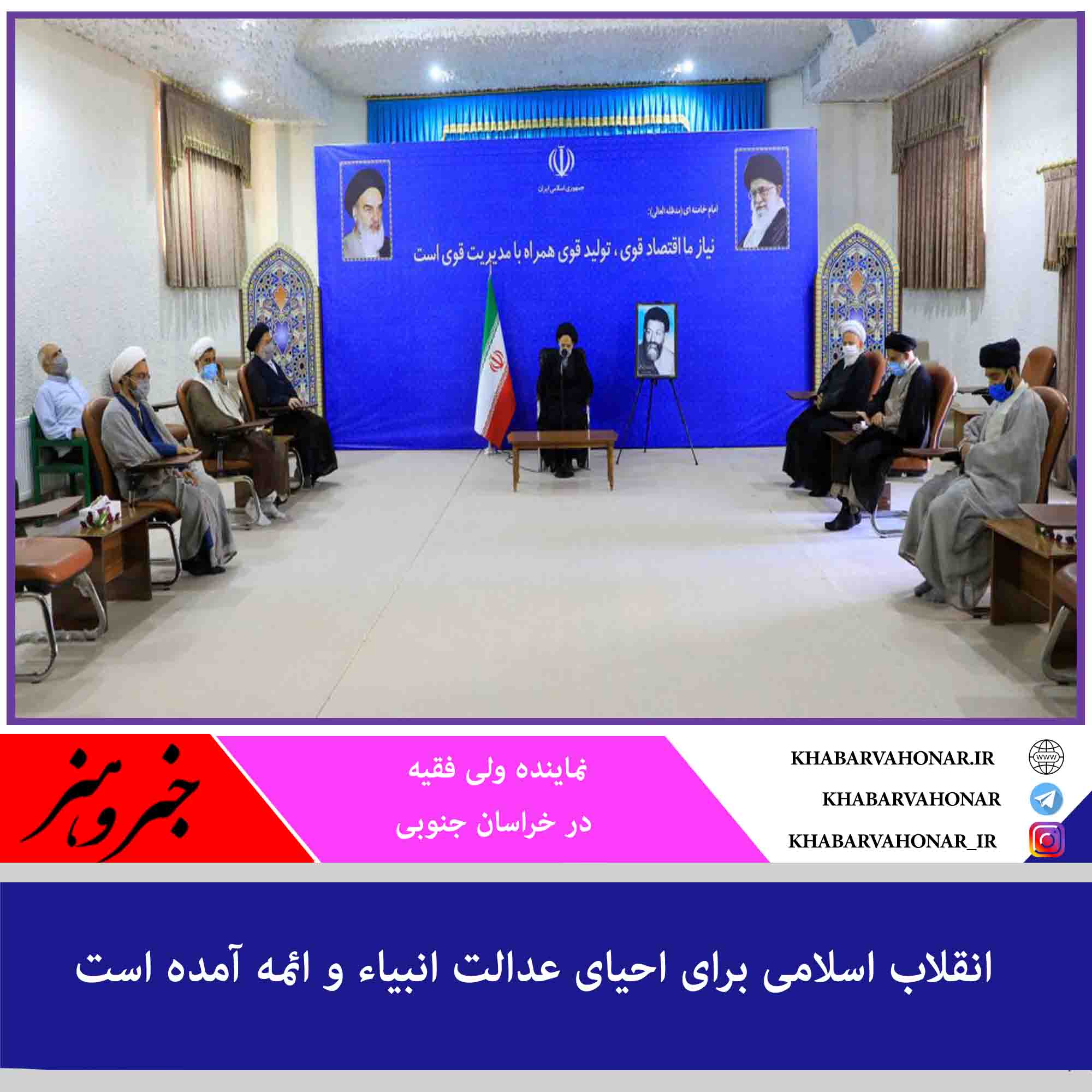 نماینده ولی فقیه در خراسان جنوبی گفت: انقلاب اسلامی برای احیای عدالت انبیاء و ائمه هدی آمده است، یعنی آبروی امام علی(ع)، امام صادق(ع) و حضرت مهدی(عجل الله) در گرو من و شماست،