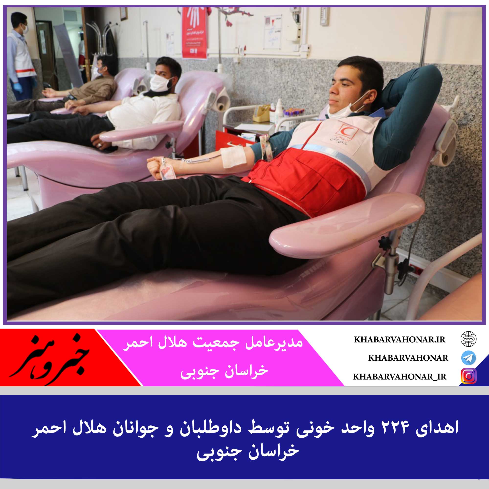 داوطلبان و جوانان هلال احمر خراسان جنوبی ۲۲۴ واحد خون به نیازمندان اهدا کردند.