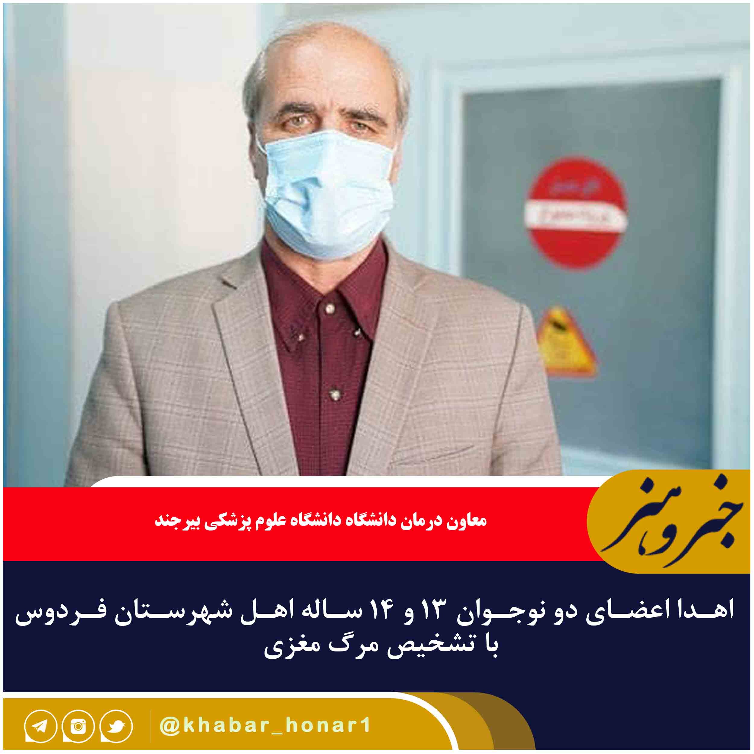 دو نوجوان ۱۳ و ۱۴ ساله اهل شهرستان فردوس با تشخیص مرگ مغزی به ترتیب در تاریخ های ۰۹/۱۴/ ۱۴۰۱ و ۱۴۰۱/۰۹/۱۸ در بیمارستان شهید دکتر چمران فردوس بستری شدند.