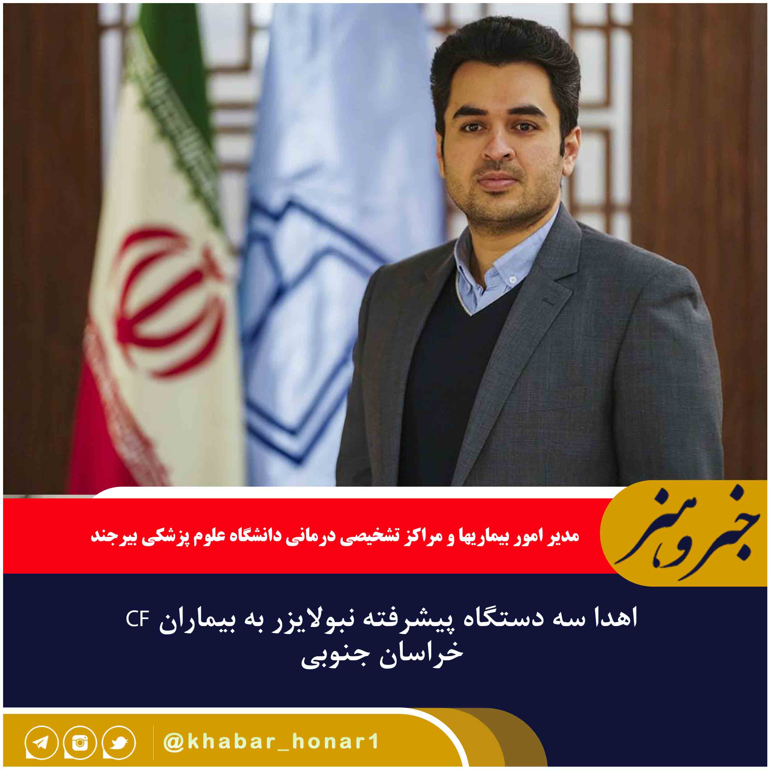 مدیر امور بیماریها و مراکز تشخیصی درمانی دانشگاه علوم پزشکی بیرجند گفت: با پیگیری اداره امور بیماریهای خاص معاونت درمان ، در فاز دوم توزیع دستگاههای نبولایزر اهدایی دفتر یونیسف در ایران، تعداد سه دستگاه نبولایزر Eflow به بیماران (CF) استان اختصاص یافت.دکتر محمد یوسف قدوسی افزودد:سال گذشته ۵ دستگاه نبولایزر به بیماران اهدا شد که درمجموع تعداد۸ بیمار از ۱۶ بیمار سی اف تحت پوشش دانشگاه علوم پزشکی بیرجند این دستگاه را دریافت کرده اند. دستگاه نبولایزر Eflow از پیشرفته ترین و استانداردترین دستگاههای نبولایزر موجود در دنیا برای بیماران سی اف است.