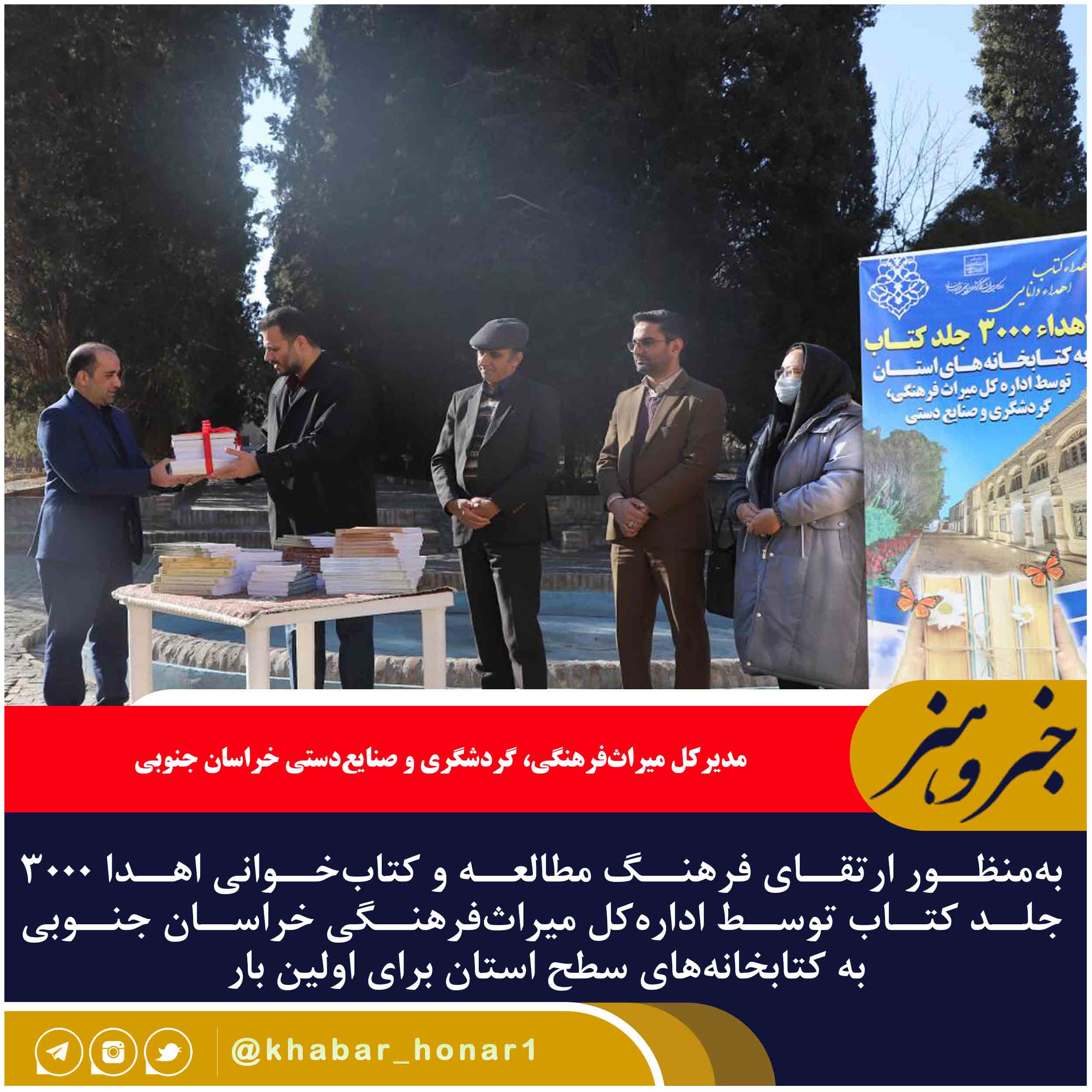 مدیرکل میراثفرهنگی، گردشگری و صنایعدستی خراسان جنوبی گفت: ۳ هزار جلد کتاب با ۳۶ عنوان توسط ادارهکل میراثفرهنگی، گردشگری و صنایعدستی به کتابخانههای استان اهدا شد.