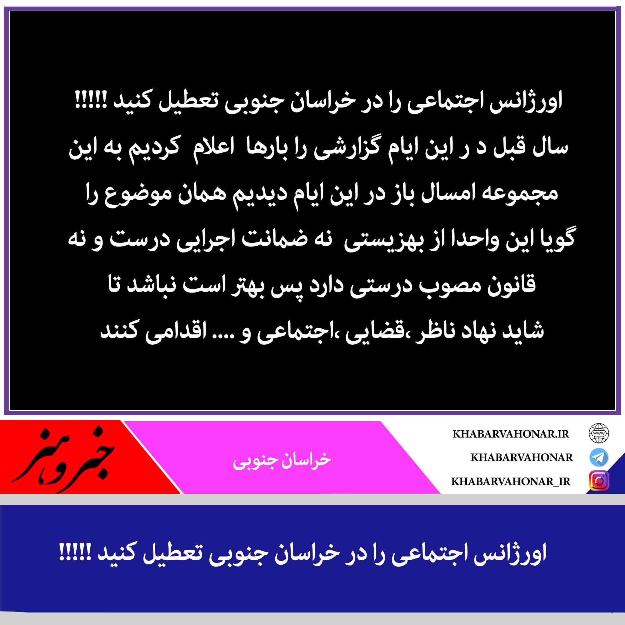 اورژانس اجتماعی را در خراسان جنوبی تعطیل کنید !!!!!