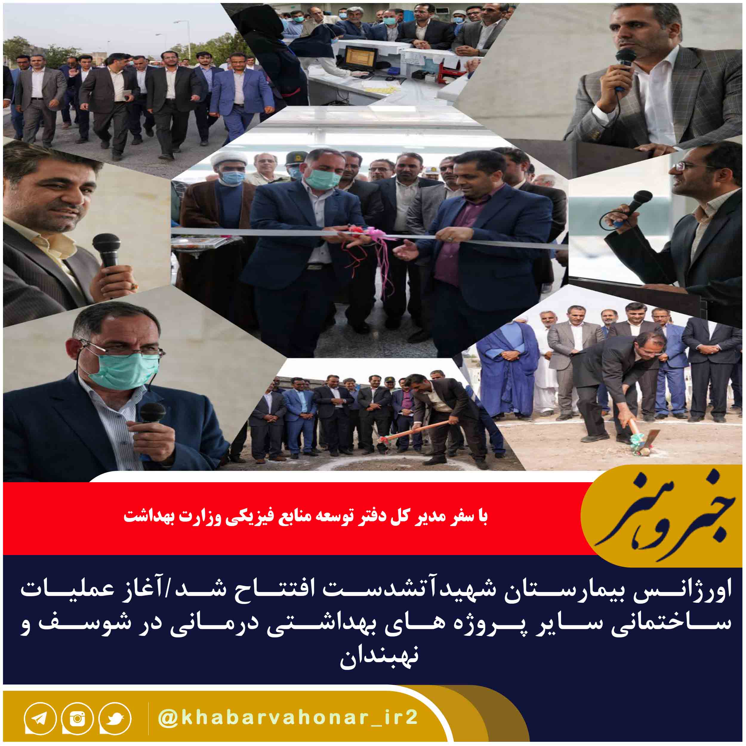 ?با سفر مدیر کل دفتر توسعه منابع فیزیکی وزارت بهداشت به نهبندان و حضور جمعی از مسئولین دانشگاهی و استانی، ساختمان اورژانس و آی سی یو بیمارستان شهیدآتشدست به بهره برداری رسید و عملیات ساختمانی توسعه این بیمارستان به ۹۶ تختخوابی، احداث آشیانه بالگرد بیمارستان و احداث ساختمان مرکز خدمات جامع سلامت شوسف آغاز شد.