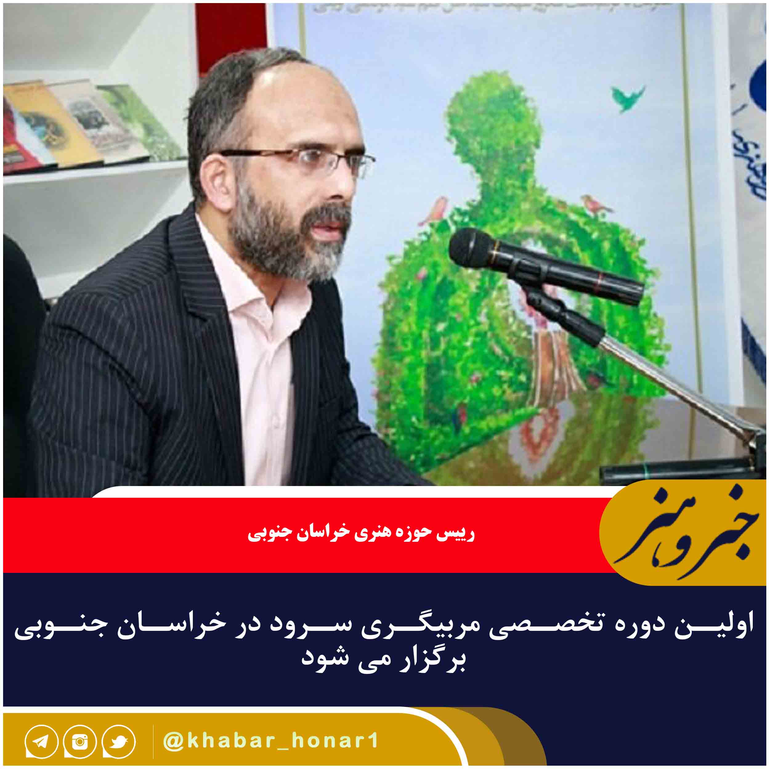 -رییس حوزه هنری خراسان جنوبی گفت: اولین دوره تخصصی مربیگری سرود در خراسان جنوبی به همت حوزه هنری، مرکز آفرینش های هنری بسیج استان، آموزش و پرورش خراسان جنوبی و مرکز سینوا برگزار می شود