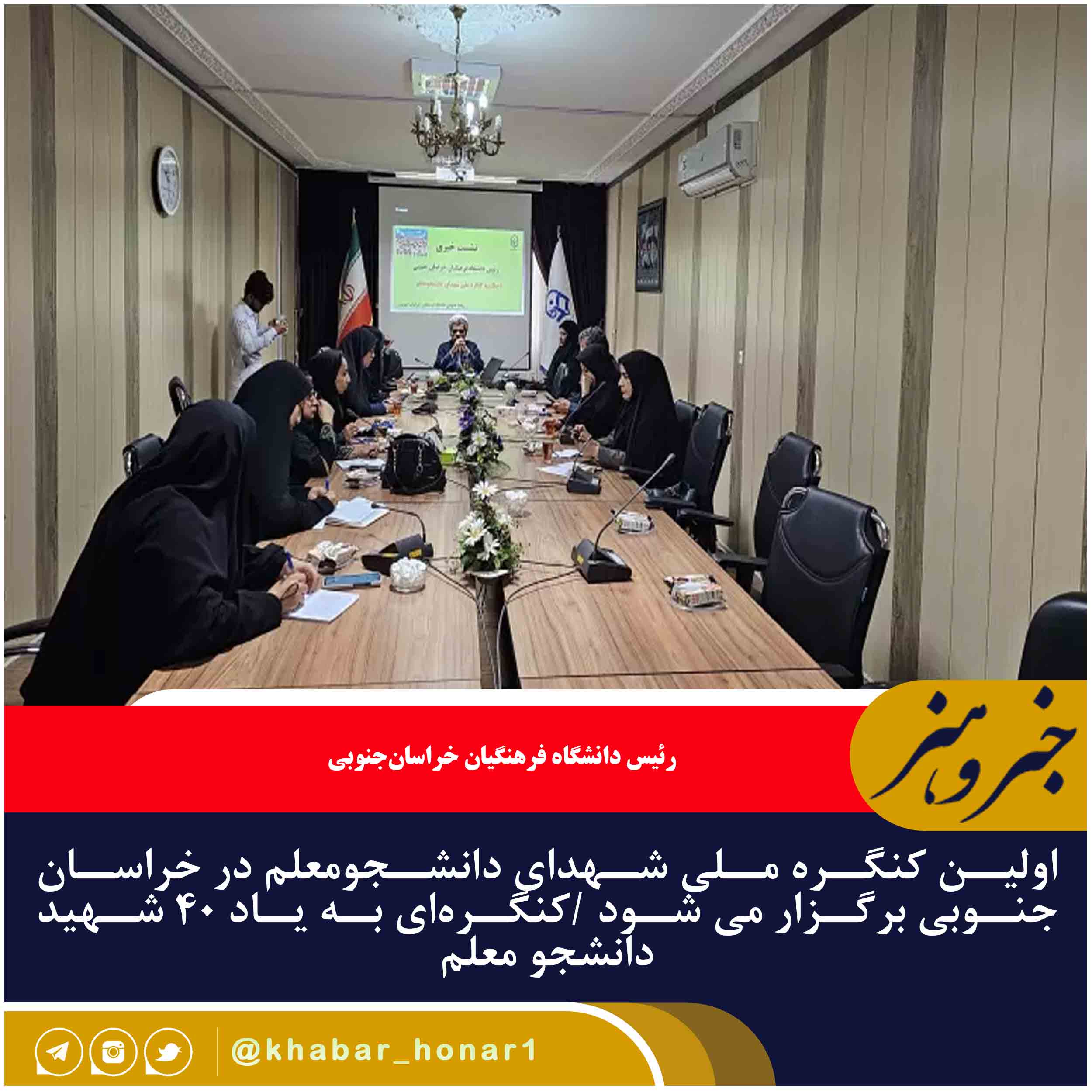 رئیس دانشگاه فرهنگیان خراسانجنوبی گفت: اولین کنگره ملی شهدای دانشجومعلم در استان روز دوشنبه ۲۲ آبان در حسینیه جماران بیرجند برگزار میشود.