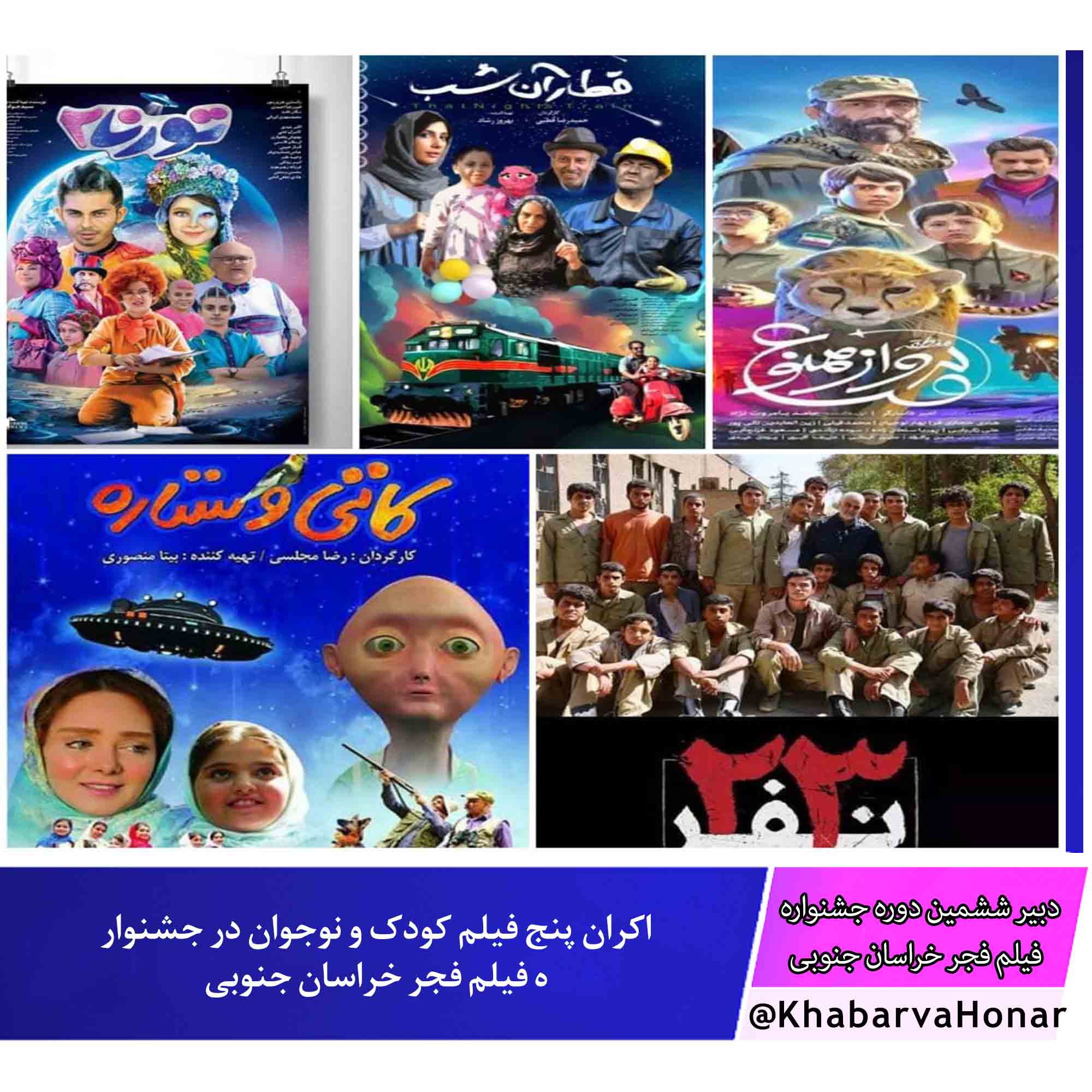 دبیر ششمین دوره جشنواره فیلم فجر خراسان جنوبی از اکران پنج عنوان فیلم ویژه کودکان و نوجوانان در بخش سیمرغ و پروانه ها همزمان با برگزاری جشنواره فیلم فجر در تالار ایثار بیرجند خبر داد.