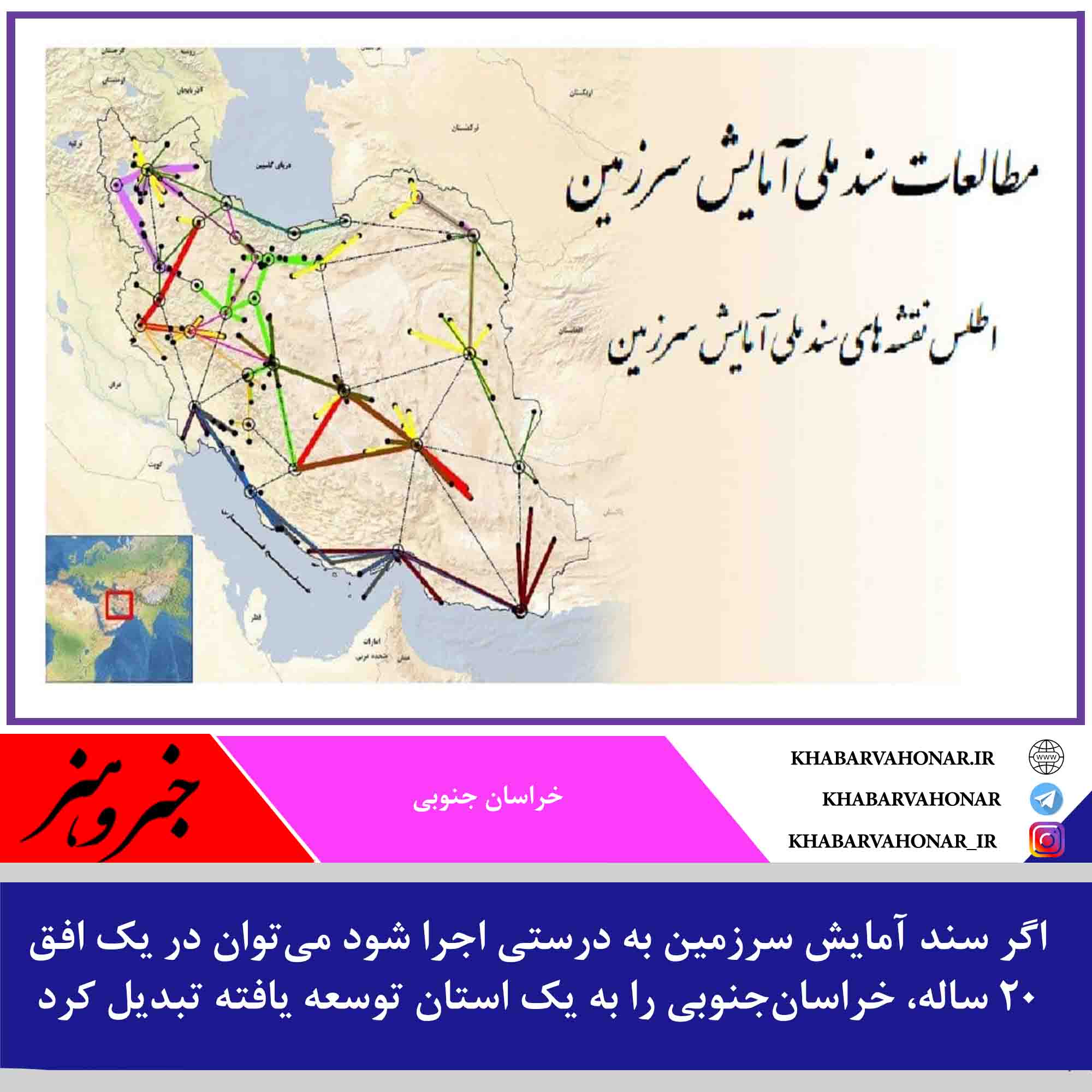 آن طور که مجری طرح آمایش استان در زمان اتمام این طرح گفت: اگر این سند به درستی اجرا شود میتوان در یک افق ۲۰ ساله، خراسانجنوبی را به یک استان توسعه یافته تبدیل کرد.