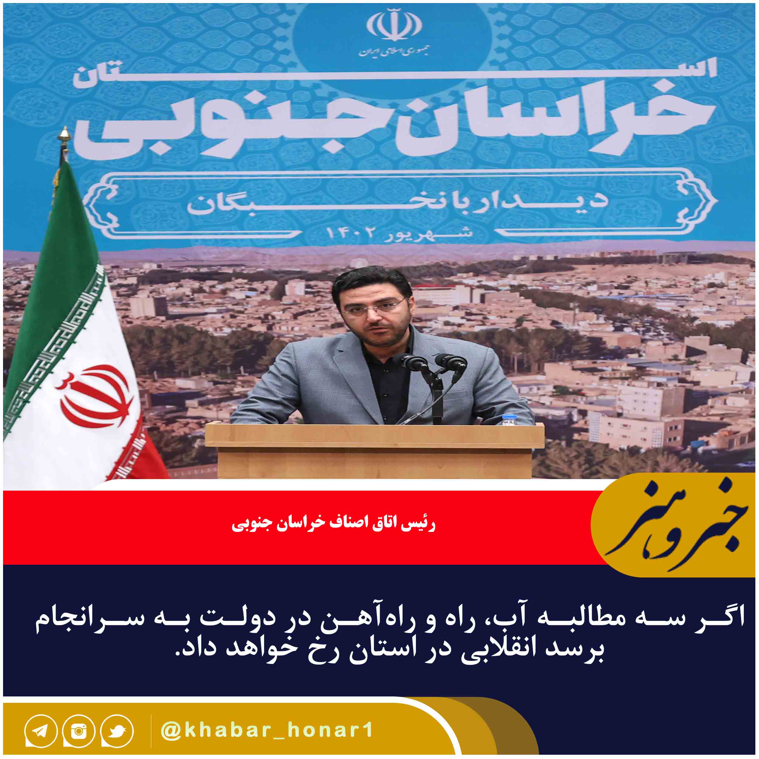 نماینده فعالان اقتصادی استان گفت: خراسانجنوبی علی رغم مشکلات متعدد اما ظرفیتهای مهمی هم دارد اما اگر سه مطالبه آب، راه و راهآهن در این دولت به سرانجام برسد انقلابی در استان رخ خواهد داد.