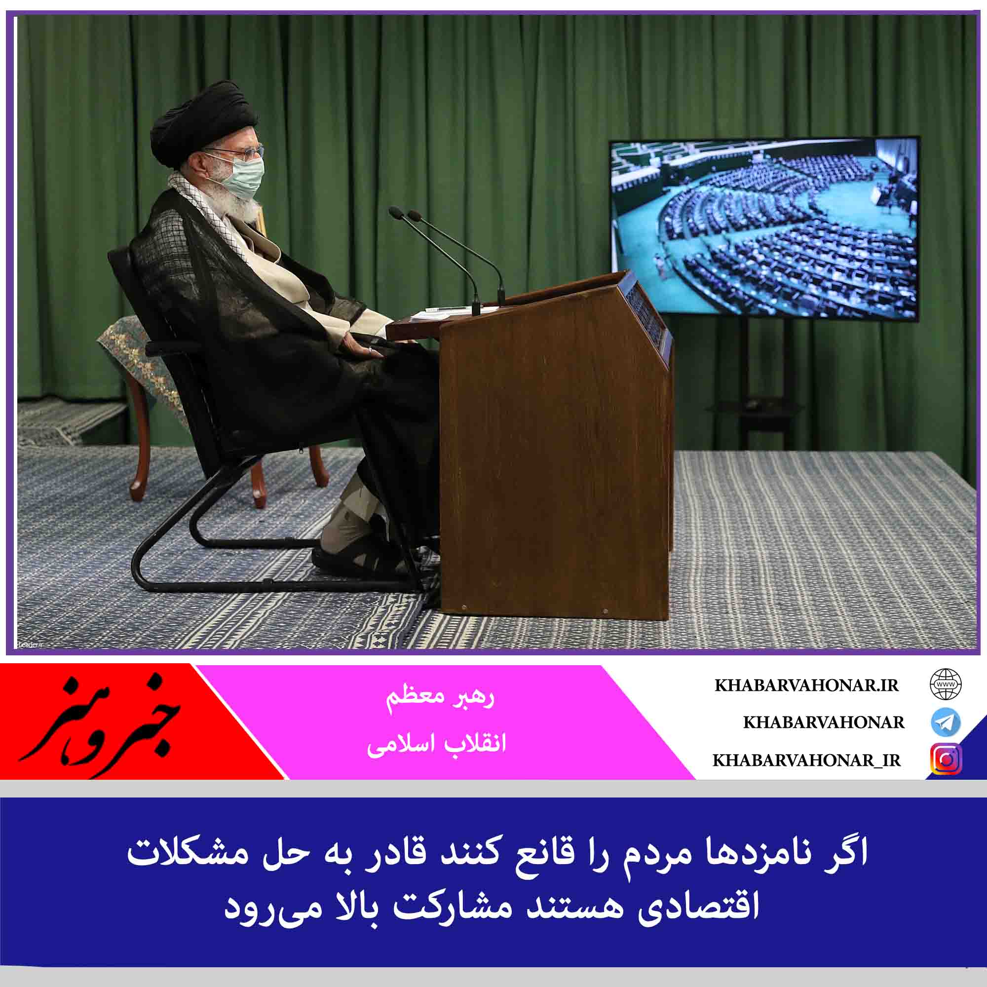 رهبر معظم انقلاب اسلامی صبح امروز (پنجشنبه) در دیدار تصویری با رئیس و نمایندگان مجلس شورای اسلامی در سخنان مهمی درباره مسائل اخیر انتخابات، بیان راهحلهای عینی و واقعی درباره مشکلات اقتصادی و معیشتی مردم در برنامههای انتخاباتی نامزدها را عامل اصلی در افزایش انگیزه مشارکت در انتخابات خواندند و با تبیین بایدها و نبایدهای رقابتهای انتخاباتی تأکید کردند: اثر نتیجه انتخابات سالها بر زندگی مردم و کشور سایهافکن خواهد بود و امیدواریم انتخابات ۲۸ خرداد بر خلاف خواسته دشمنان مایه آبرو، عزت و سربلندی ایران بشود.