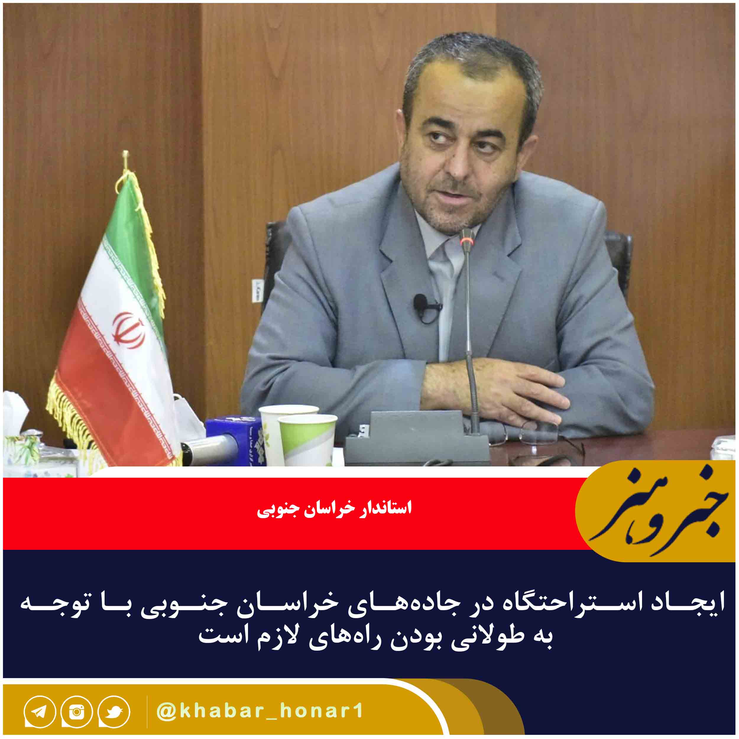 استاندار خراسان جنوبی گفت: با توجه به طولانی بودن راههای استان و اینکه بسیاری از تصادفات جادهای در ۳۰ کیلومتری ورودی شهرها روی میدهد، ایجاد استراحتگاه در جادههای استان ضروری است.