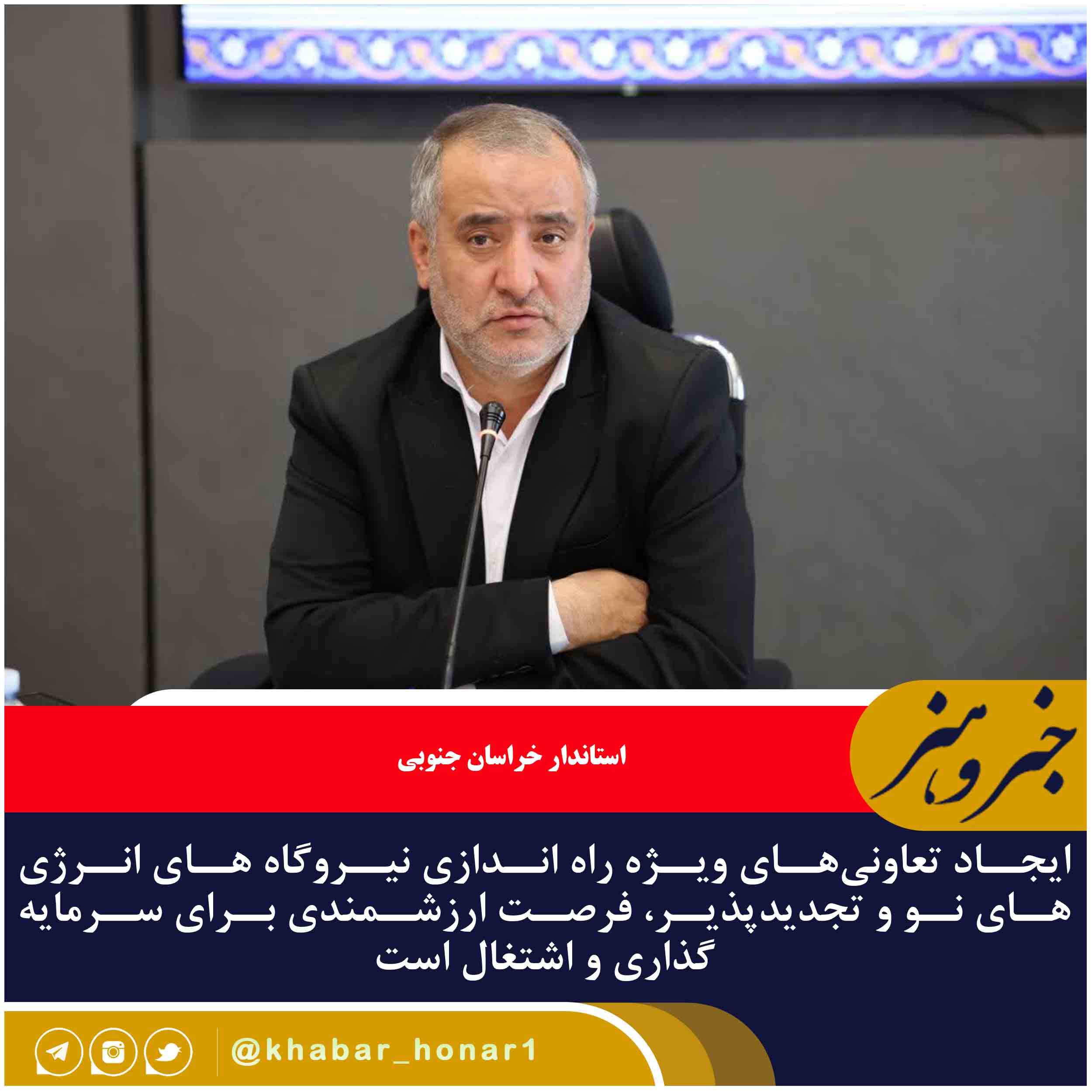 استاندار خراسان جنوبی گفت: ایجاد تعاونیهای ویژه راه اندازی نیروگاه های انرژیهای نو و تجدیدپذیر، فرصت ارزشمندی برای سرمایهگذاری و اشتغال است.