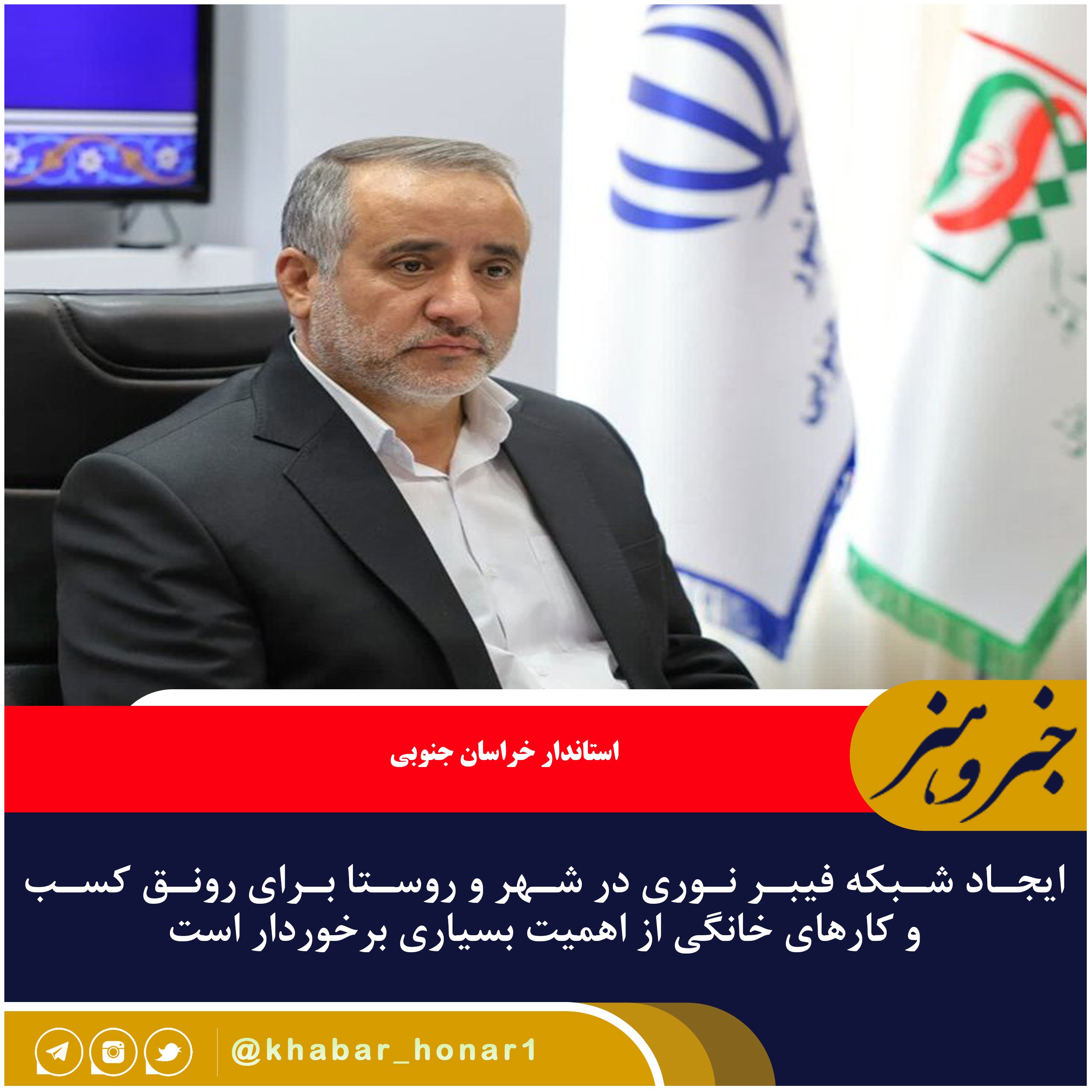 وی متذکر شد: ایجاد شبکه فیبر نوری در شهر و روستا برای رونق کسب و کارهای خانگی از اهمیت بسیاری برخوردار است.