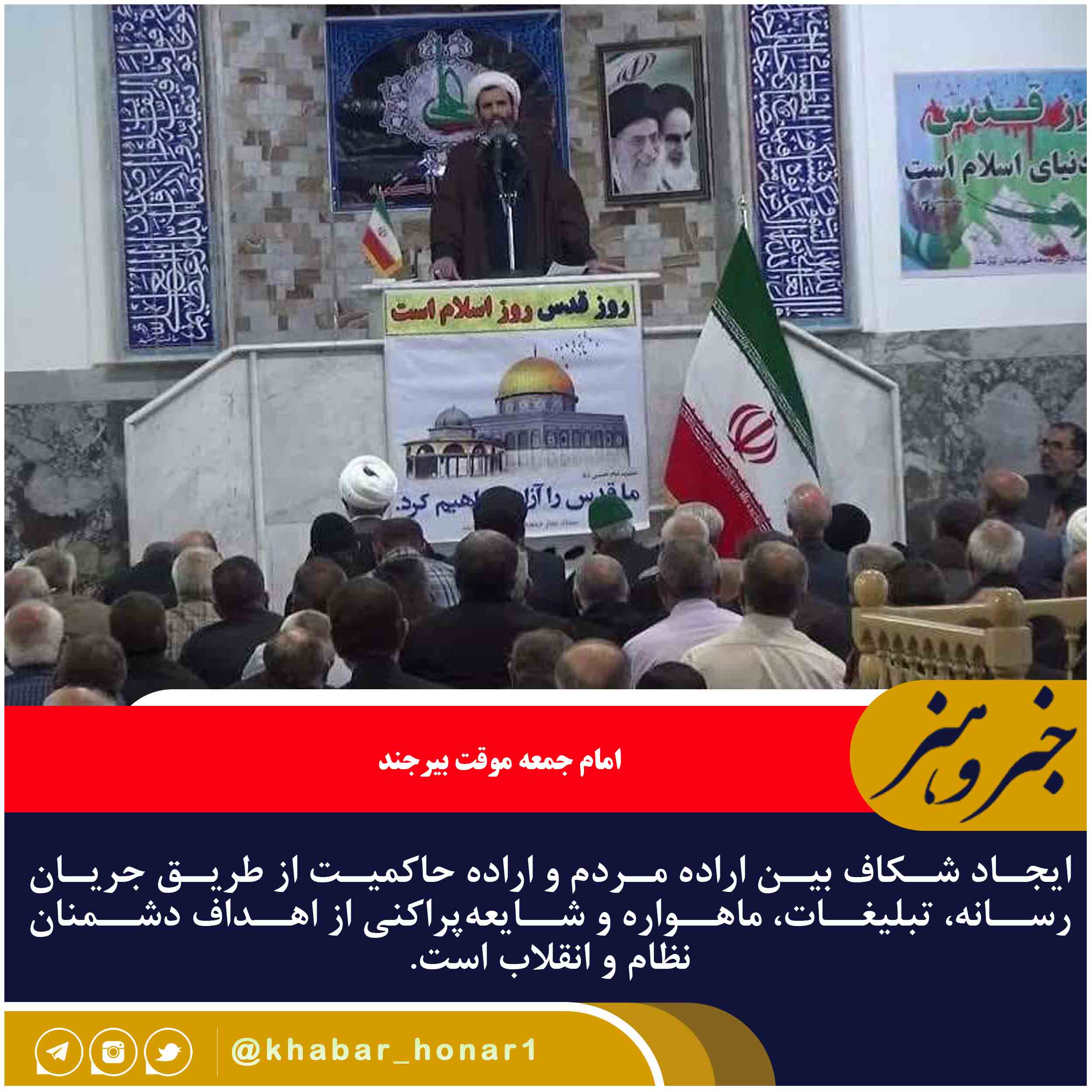 امام جمعه موقت بیرجند گفت: ایجاد شکاف بین اراده مردم و اراده حاکمیت از طریق جریان رسانه، تبلیغات، ماهواره و شایعهپراکنی از اهداف دشمنان نظام و انقلاب است.