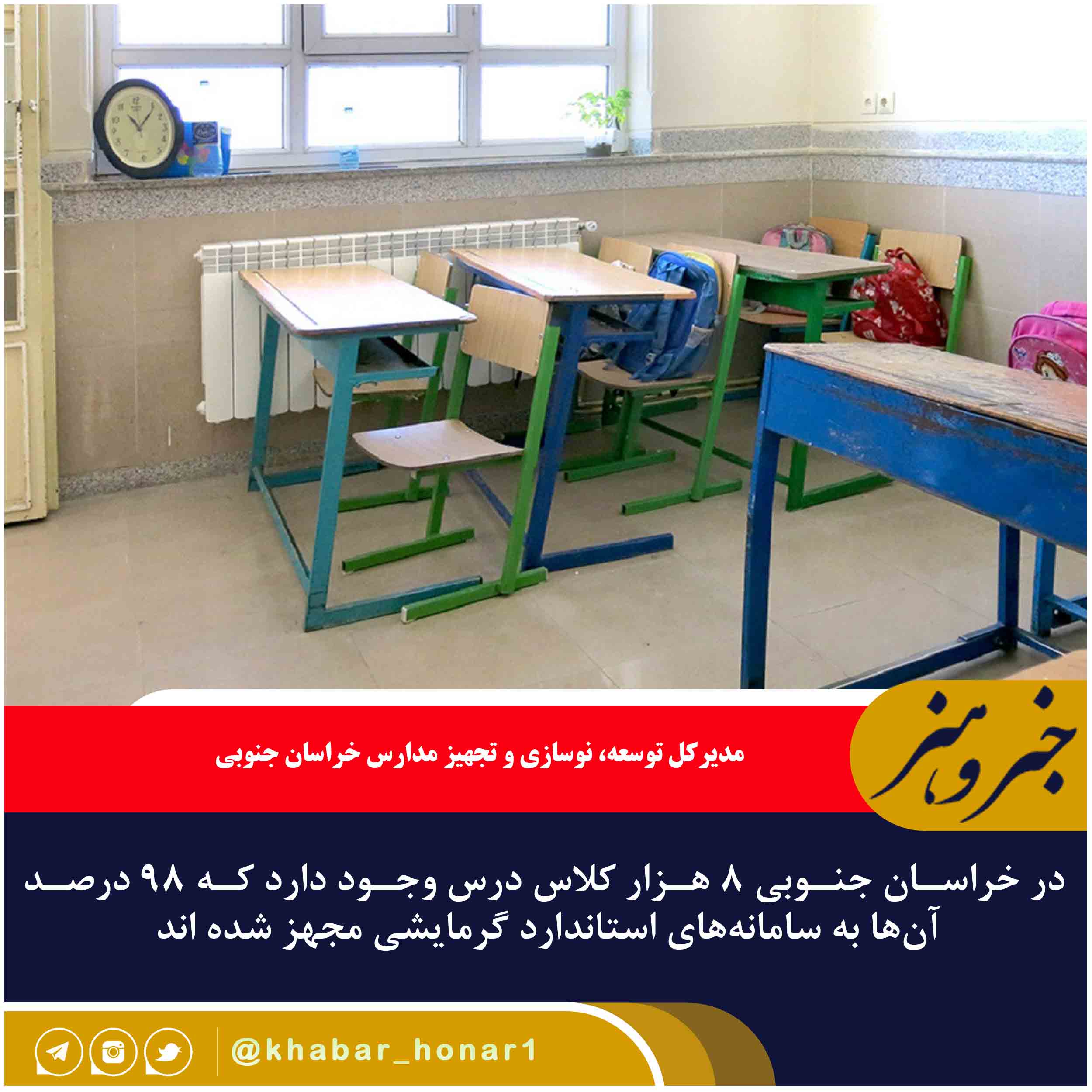 ۹۸ درصد کلاسهای درس خراسان جنوبی تاکنون به سامانههای استاندارد گرمایشی مجهز شده اند.