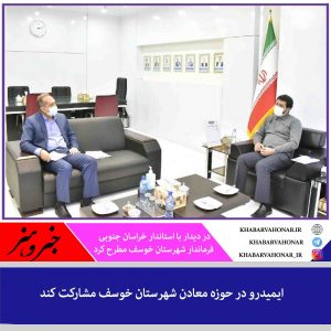 فرماندار شهرستان خوسف در این دیدار با استاندار خراسان جنوبی با بیان اینکه این شهرستان دارای پتانسیل ها و ظرفیت های بالقوه ای می باشد که با رشد و شکوفایی اسن ظرفیت ها میتوان زمینه توسعه این شهرستان را بیش از گذشته فراهم کرد.