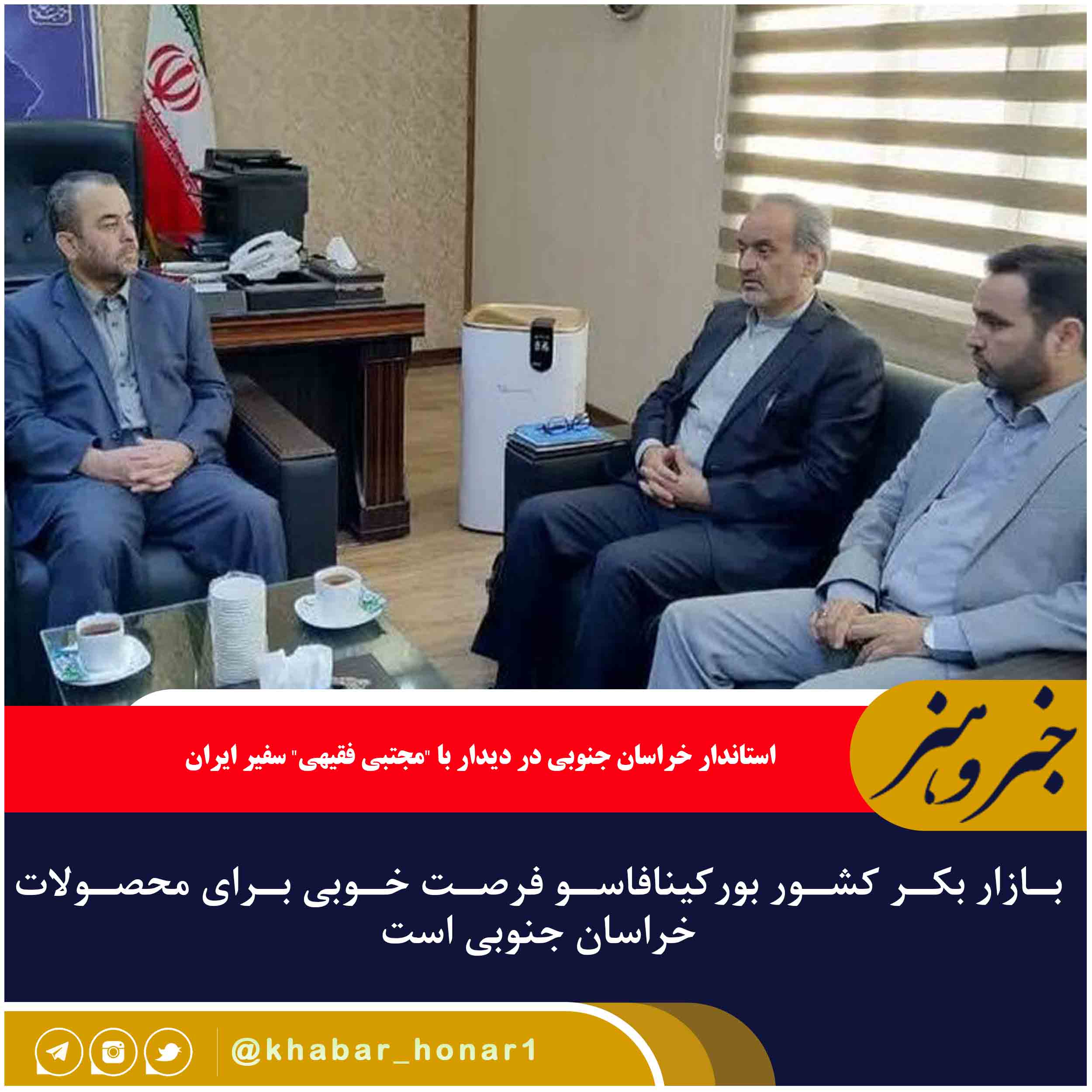 وی از قول مساعد سفیر کشورمان درخصوص باز کردن باب گفت و گوی استان با دیگر همتایانش گفت و افزود: براساس تبادل نظرهایی که در این جلسه صورت گرفت، خراسان جنوبی پذیرای هیاتهای تجاری بورکینافاسو خواهد بود و به زودی شرایط و زمینههای اعزام یک گروه تجاری از استان به این کشور فراهم میشود.