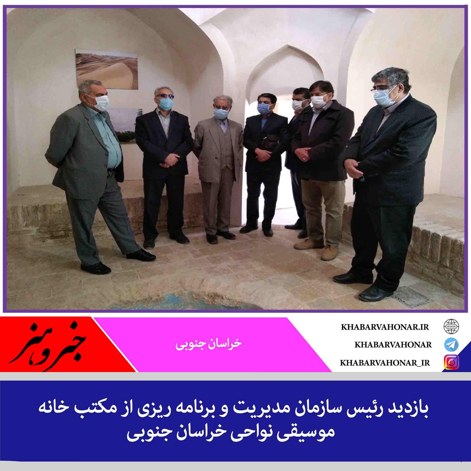 رئیس سازمان مدیریت و برنامه ریزی خراسان جنوبی همراه با مدیر کل فرهنگ و ارشاد اسلامی خراسان جنوبی از مکتب خانه موسیقی نواحی و خانه فرهنگ و هنر استان بازدید کرد. ناصر نبی زاده مدیر کل فرهنگ و ارشاد اسلامی در این بازدید که چهارشنبه ۵ اسفندماه جاری انجام گرفت، عنوان کرد: هدف این مجموعه ضبط و ثبت آثار و آموزش و حفظ موسیقی نواحی استان است.
