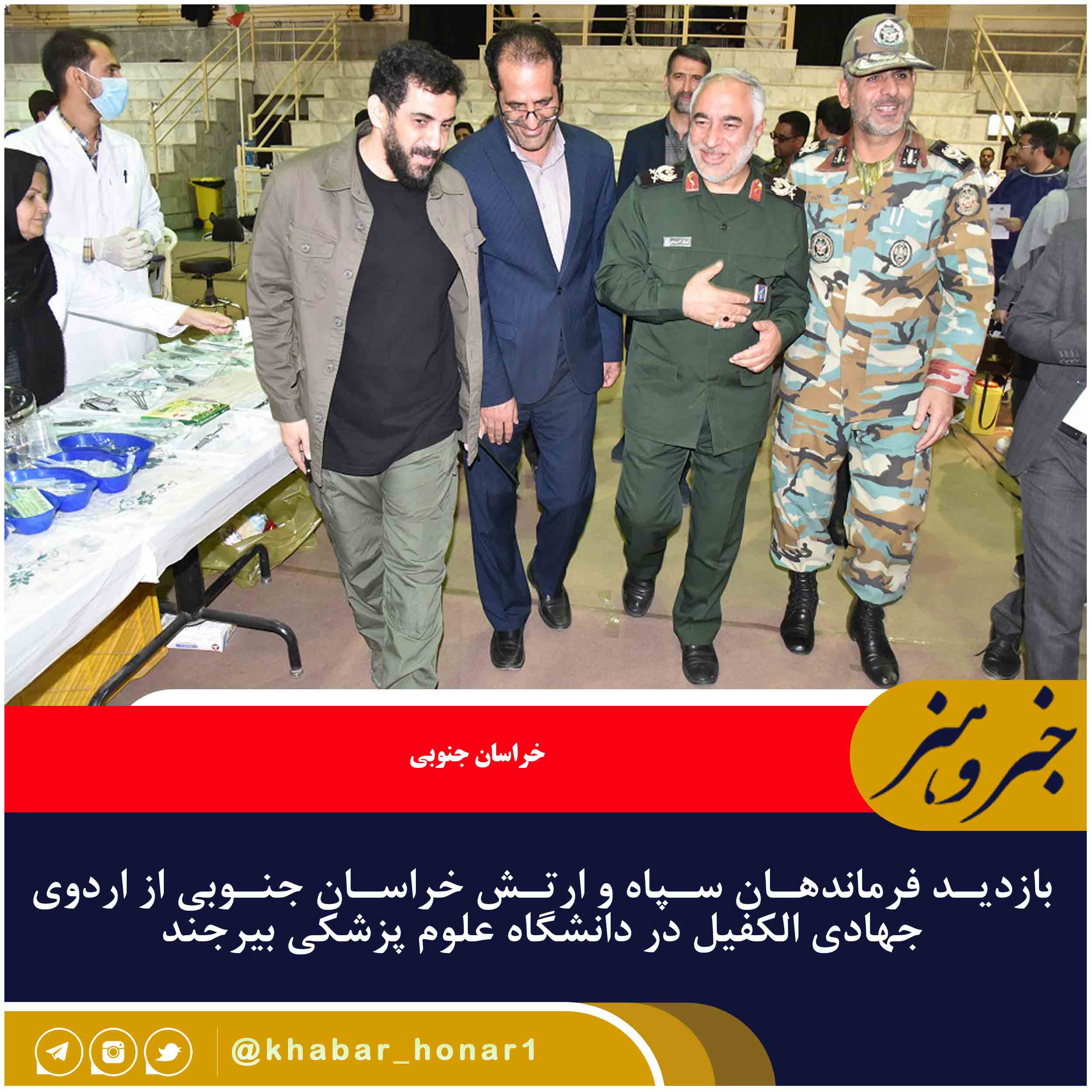 سردار « محمدرضا مهدوی» فرمانده سپاه انصارالرضا (ع) خراسان جنوبی در این بازدید با بیان اینکه بسیار خوشحال و خرسندیم که امروز در خدمت جهادگران الکفیل که یک گروه جهادی جوان، انقلابی و با روحیه از سراسر کشور هستند رسیدیم گفت: در این اردو خدمات بسیار خوب و ارزندهای در حیطههای پزشکی و دندانپزشکی به مراجعین که اکثراً از قشر نیازمند جامعه هستند ارائه میشود