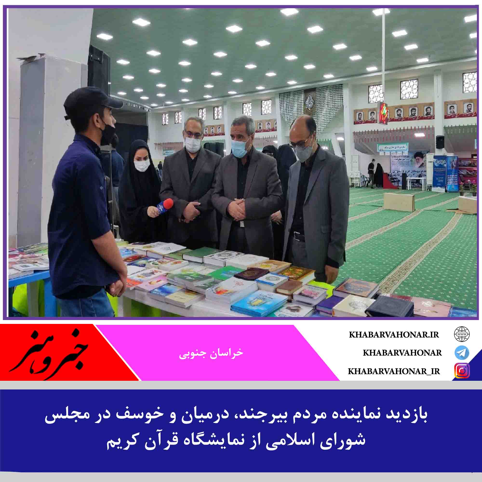 نماینده مردم بیرجند، درمیان و خوسف در مجلس شورای اسلامی به همراه سرپرست اداره کل فرهنگ و ارشاد اسلامی خراسان جنوبی از سیزدهمین نمایشگاه قرآن کریم بازدید کرد.