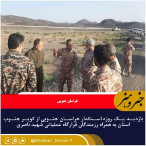 بازدید یک روزه استاندار خراسان جنوبی از کویر جنوب استان به همراه رزمندگان قرارگاه عملیاتی شهید ناصری سپاه با همراهی آقای طالبی معاون سیاسی استاندار ، سردار مهدوی فرمانده سپاه انصارالرضا علیه السلام ، جناب سرهنگ شجاعی فرمانده فراجا استان و هئیت همراه .