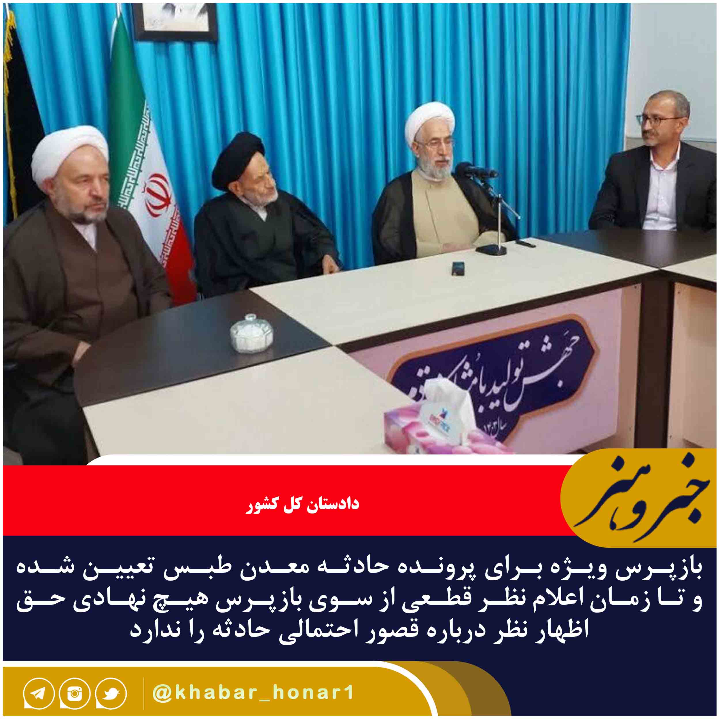 دادستان کل کشور گفت: بازپرس ویژه برای پرونده حادثه معدن طبس تعیین شده و تا زمان اعلام نظر قطعی از سوی بازپرس هیچ نهادی حق اظهار نظر درباره قصور احتمالی حادثه را ندارد.