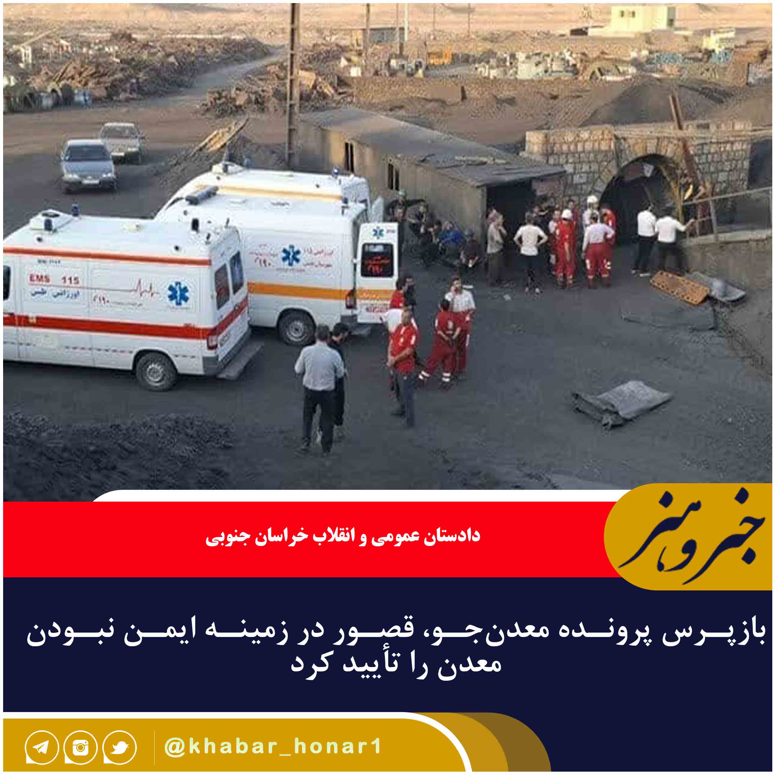 بازپرس پروندهی حادثه معدن جوی طبس: کوتاهی در زمینهی نبود ایمنی، تأیید شده و این قصور متوجه مسئولین معدن است.