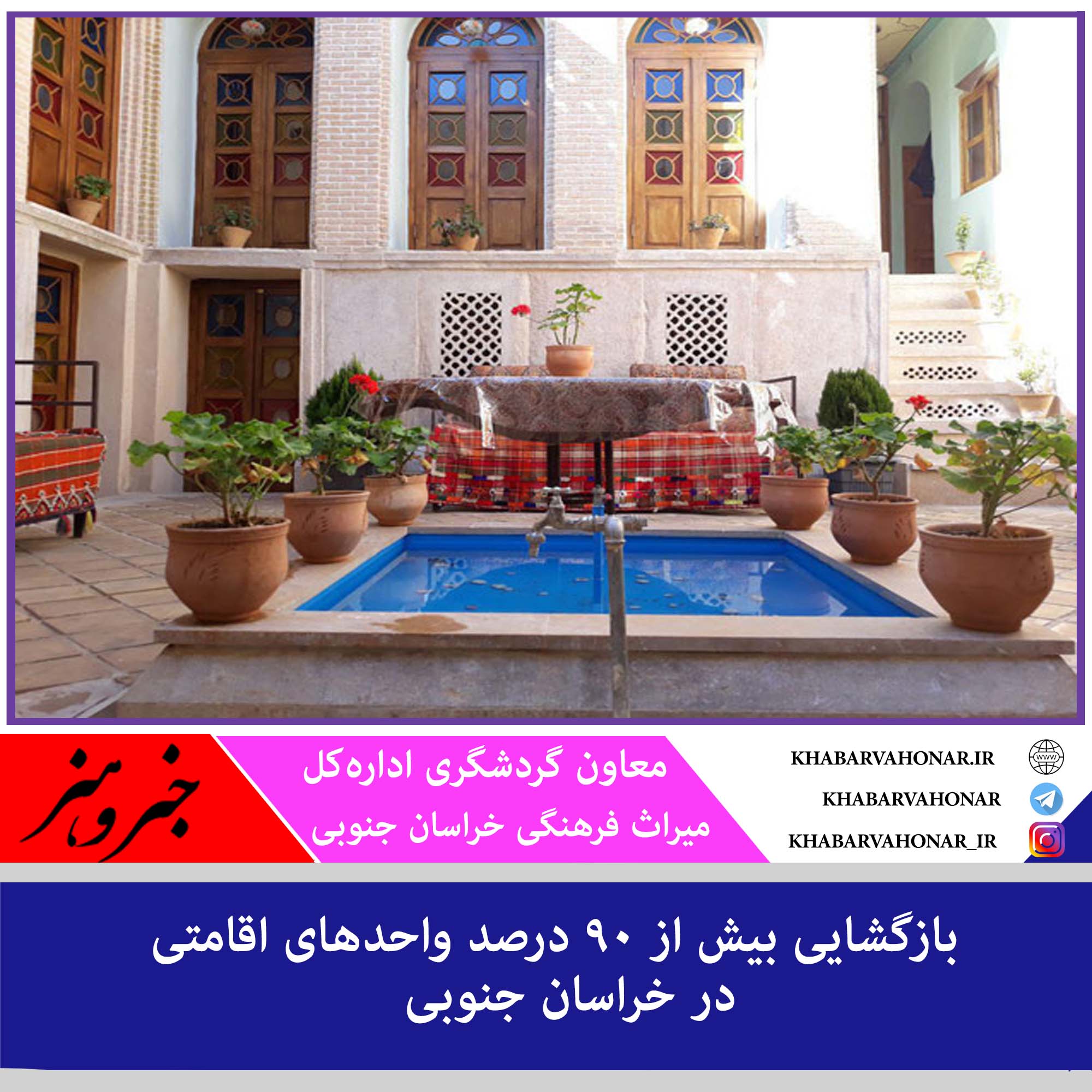 معاون گردشگری ادارهکل میراث فرهنگی، گردشگری و صنایع دستی خراسان جنوبی گفت: بیش از ۹۰ درصد از مجموع واحدهای اقامتی مجوزدار در سطح استان که پیش از این بهخاطر کرونا تعطیل شده بودند فعال شده و اکنون در حال خدمترسانی هستند.