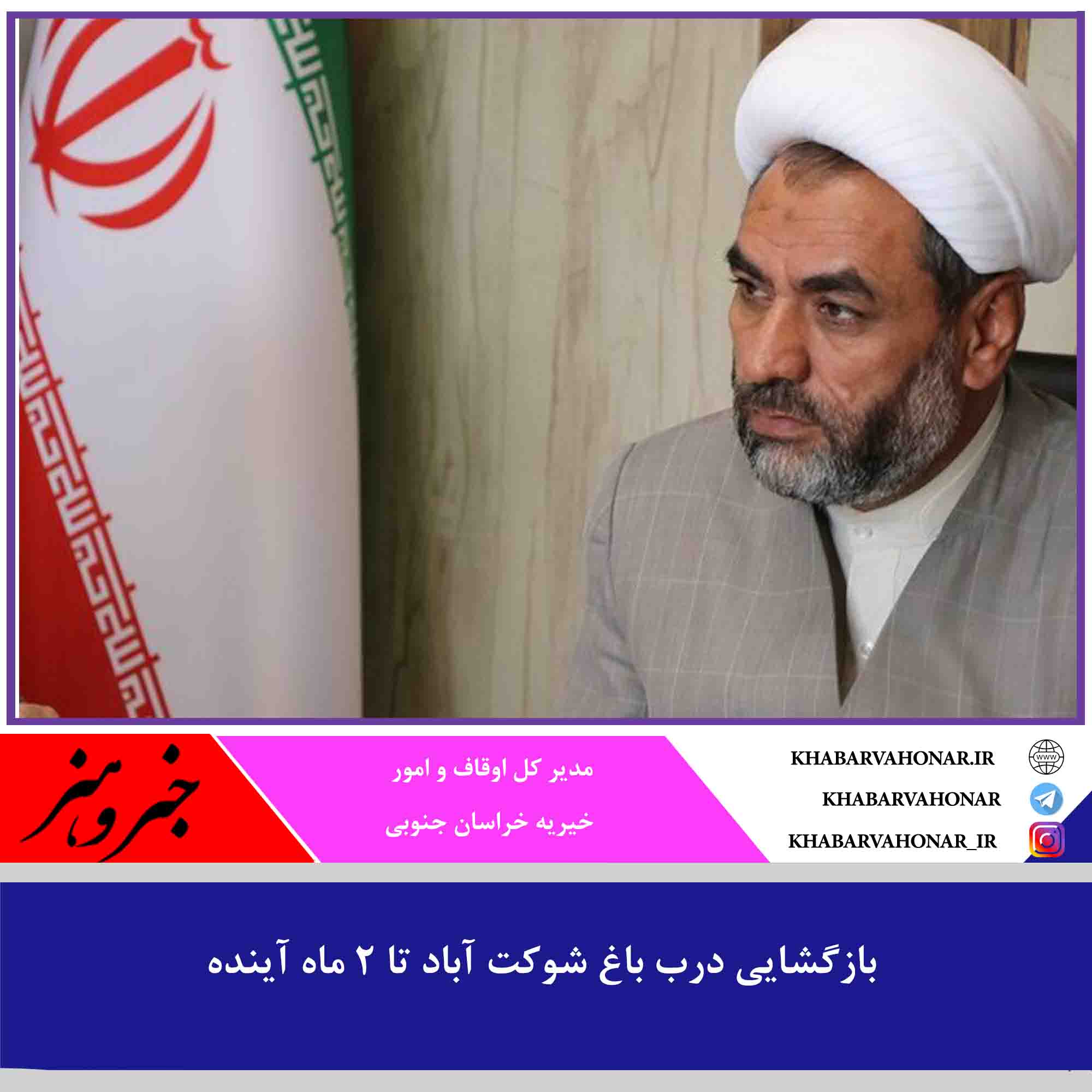 مدیر کل اوقاف و امور خیریه خراسان جنوبی از پایان عملیات مرمت و خاکبرداری باغ شوکت آباد خبر داد و کفت: این باغ تا ۲ ماه آینده برای استفاده مردم گشوده خواهد شد.