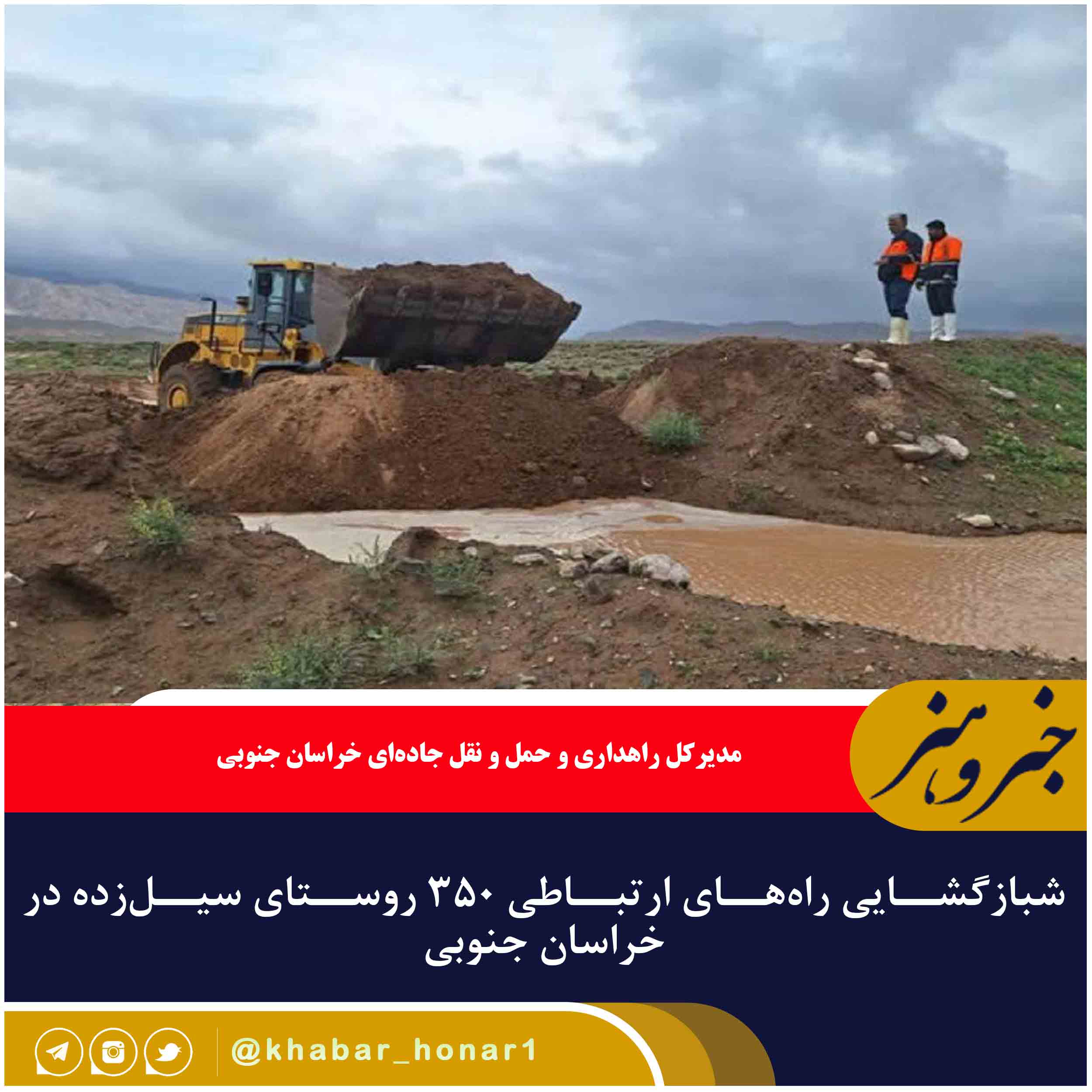 مدیرکل راهداری و حمل و نقل جادهای خراسان جنوبی افزود: به راههای ارتباطی بیش از ۳۵۰ روستا در استان طی چندین روز گذشته در اثر سیلاب آسیب وارد گردیده و با تلاش شبانه روزی عوامل راهداری تمامی محورهای آسیب دیده از سیلاب اخیر بازگشایی گردیده است.