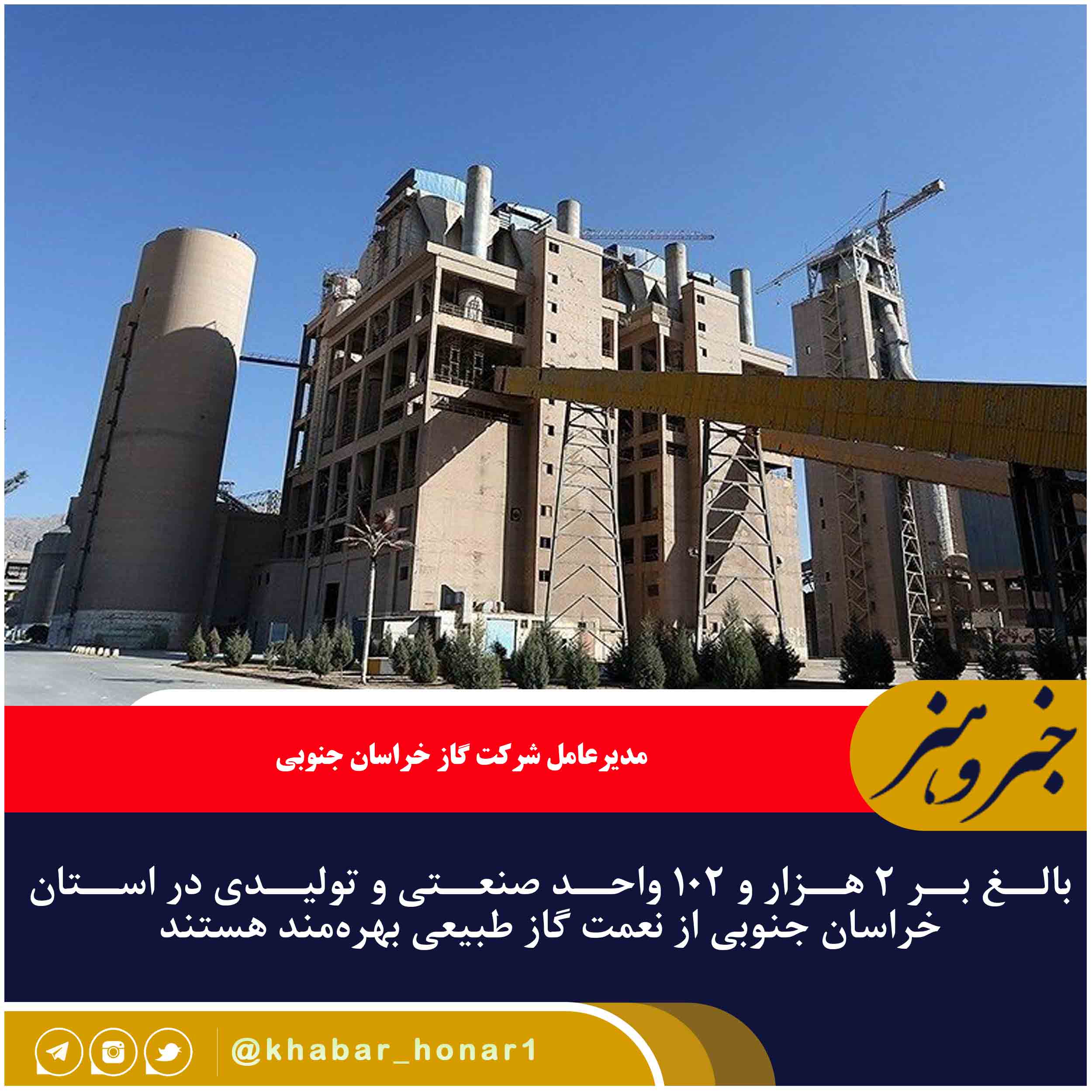 مدیرعامل شرکت گاز خراسان جنوبی گفت: در حال حاضر بیش از ۲ هزار و ۱۰۲ واحد صنعتی و تولیدی در استان از گاز طبیعی بهرهمند هستند و به عبارتی بیش از ۹۸ درصد صنایع خراسان جنوبی از سوخت پاک استفاده میکنند.