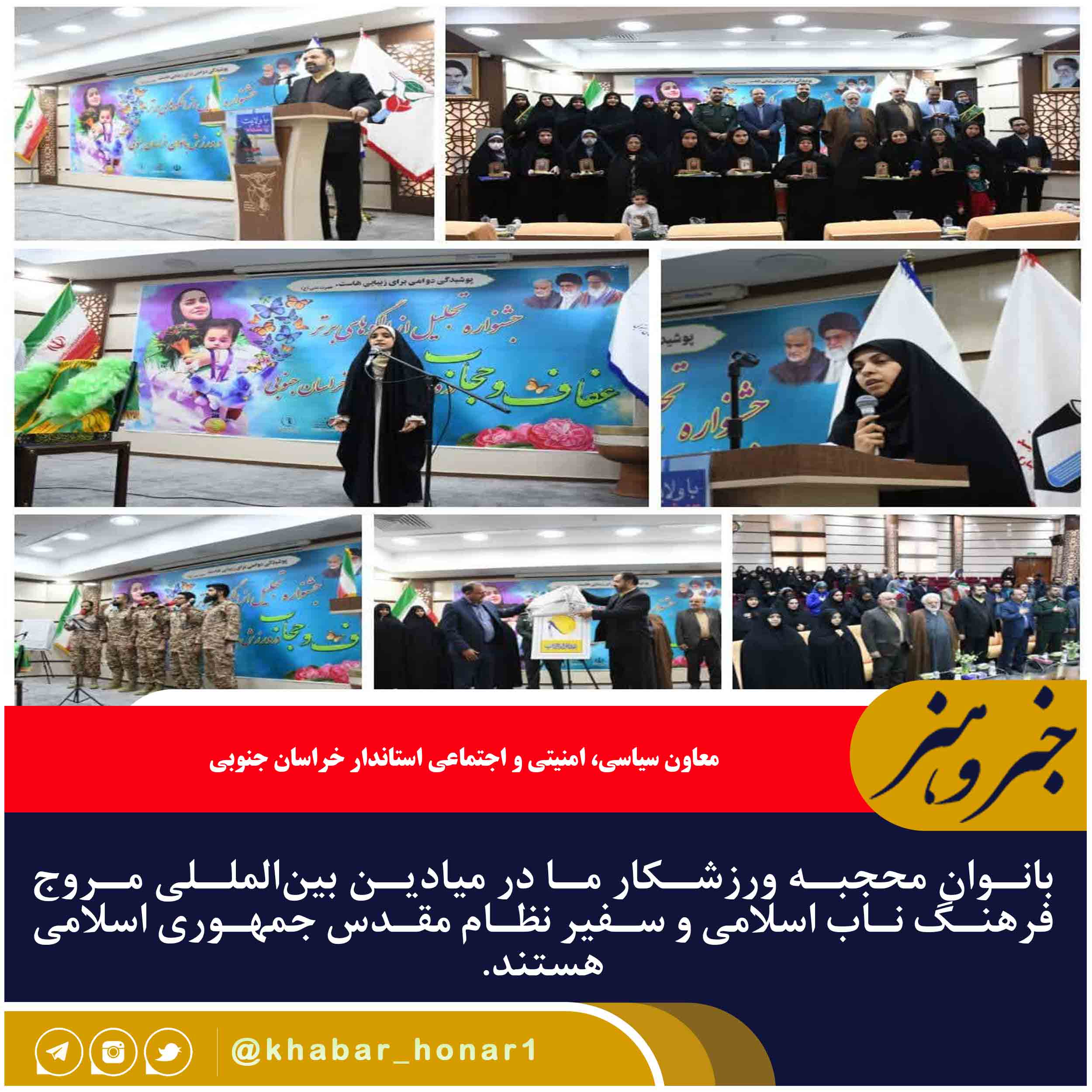 ?معاون سیاسی، امنیتی و اجتماعی استاندار خراسان جنوبی گفت: بانوان محجبه ورزشکار ما در میادین بینالمللی مروج فرهنگ ناب اسلامی و سفیر نظام مقدس جمهوری اسلامی هستند.