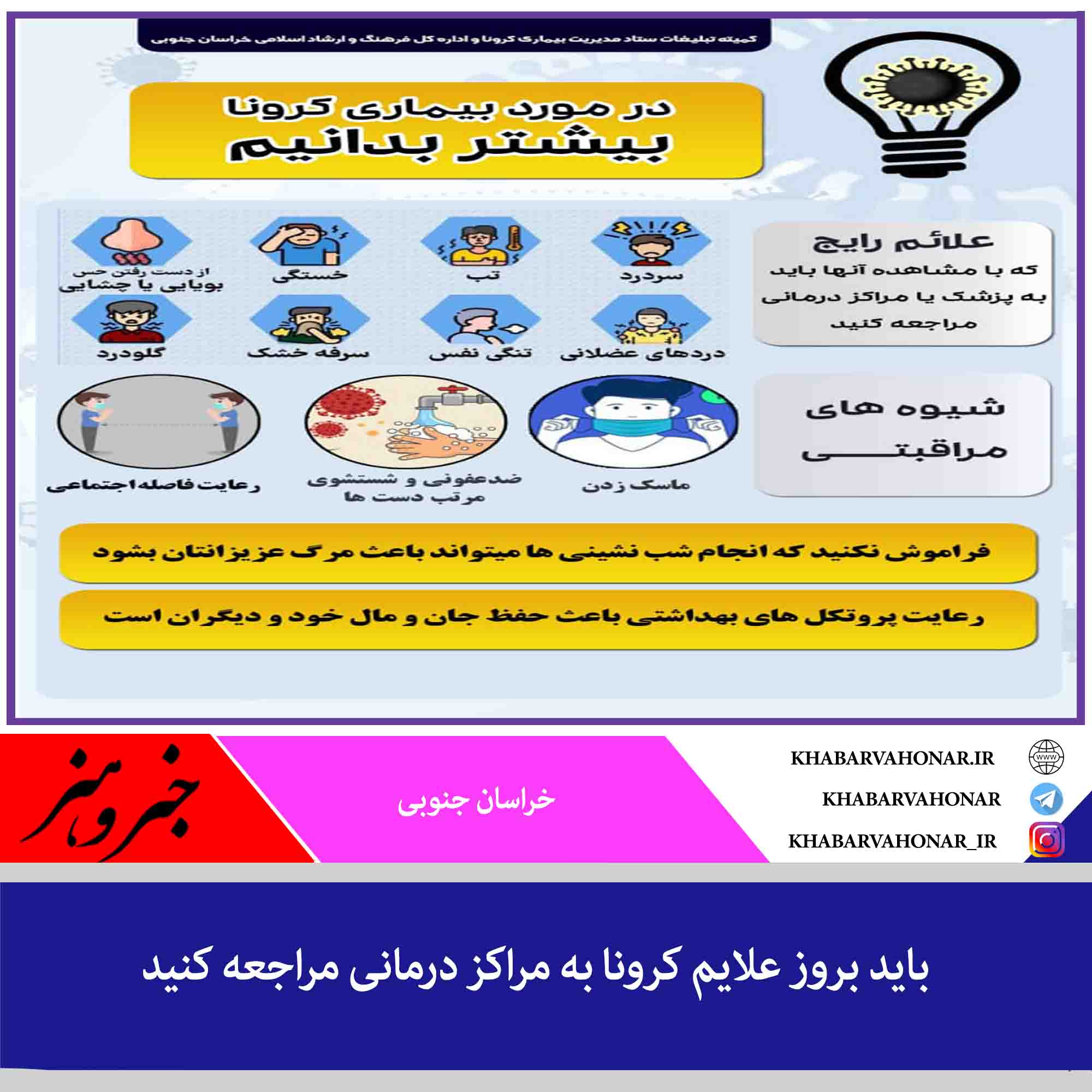 باید بروز علایم کرونا به مراکز درمانی مراجعه کنید