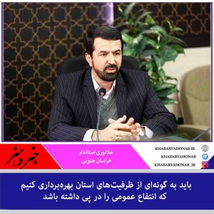 نماینده عالی دولت در خراسان جنوبی بر تقویت قابلیتهای استان تاکید کرد و گفت: باید به گونهای از ظرفیتهای استان بهرهبرداری کنیم که انتفاع عمومی را در پی داشته باشد.