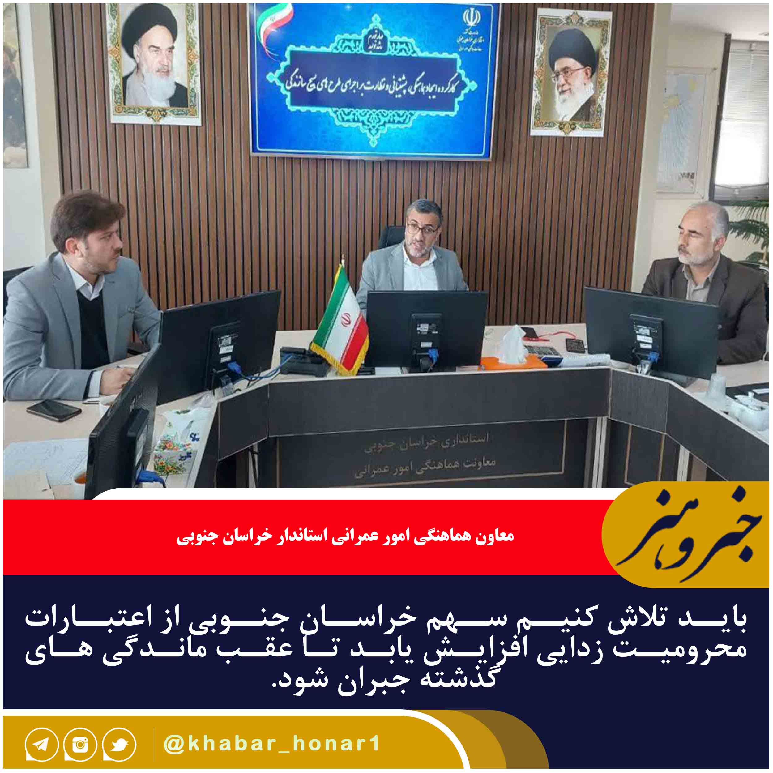 معاون هماهنگی امور عمرانی استاندار خراسان جنوبی گفت: باید تلاش کنیم سهم خراسان جنوبی از اعتبارات محرومیت زدایی افزایش یابد تا عقب ماندگی های گذشته جبران شود.